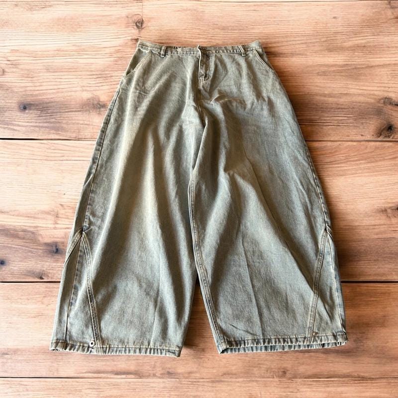 Great condition. Super wide parachute skater leg. Baggiest jeans you'll own. Belt Loops. Pockets. Korean Japanese vintage skater style. Button at hem to taper if wanted.