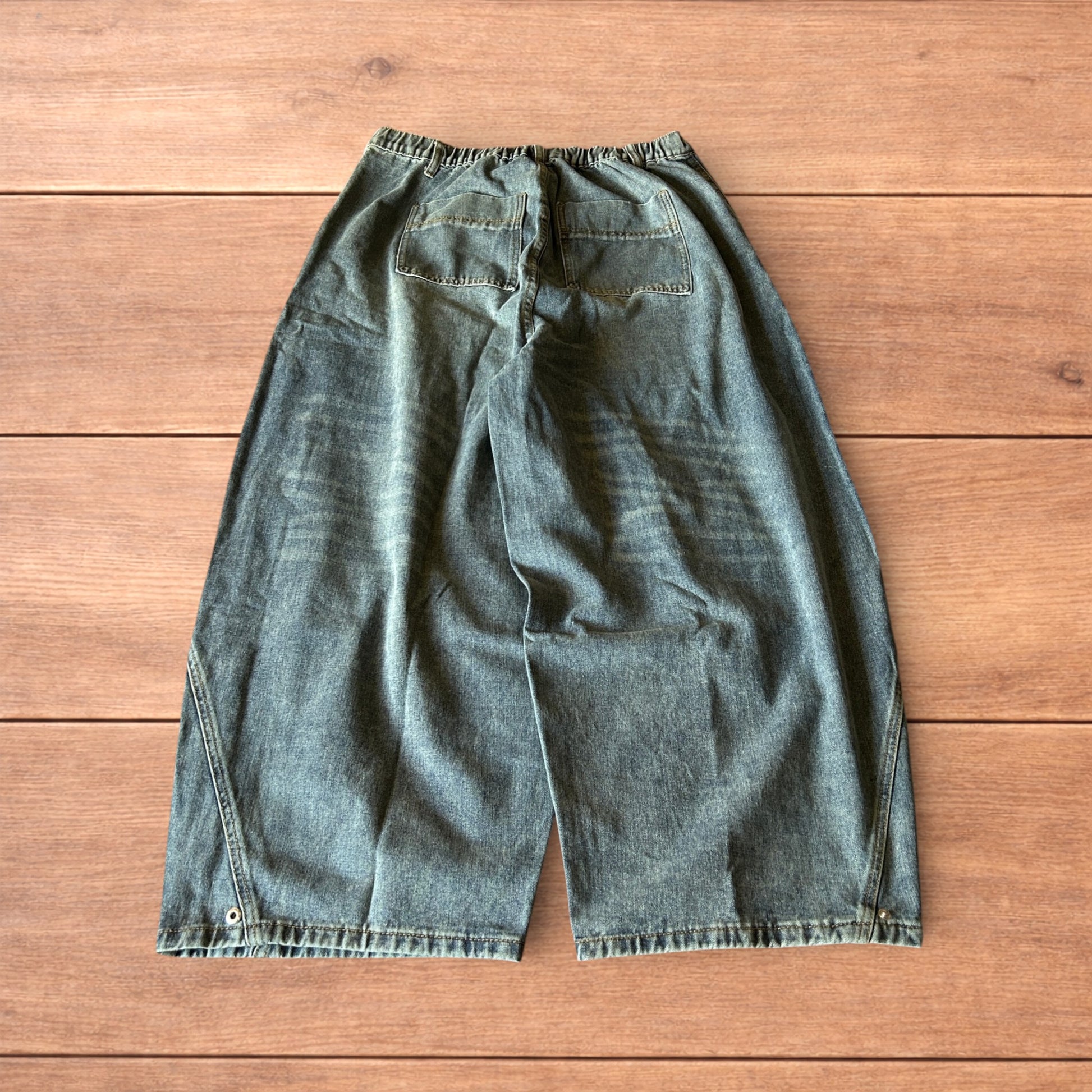 The BAGGIEST jeans ever! Great condition. Super wide parachute skater leg. Baggiest jeans you'll own. Belt Loops. Pockets. Korean Japanese vintage skater style. Button at hem to taper if wanted.