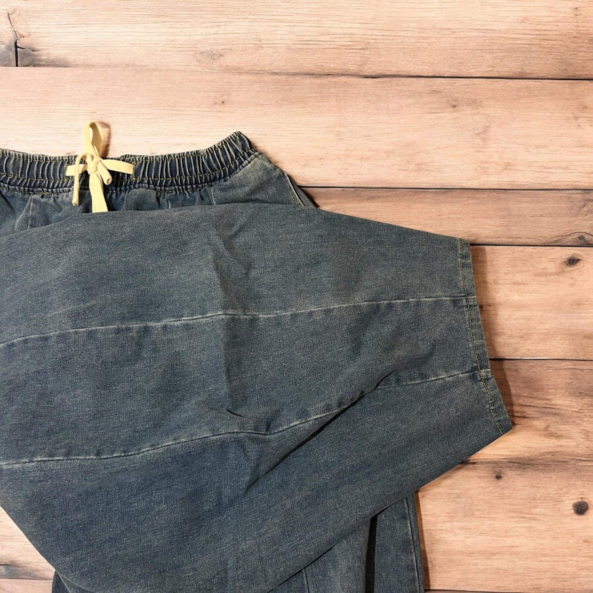 The BAGGIEST jeans ever! Great condition. Super wide leg. Baggiest jeans you'll own. Drawstring fully adjustable waist. Pockets. Korean Japanese vintage skater style. Also have in washed black and dark blue.