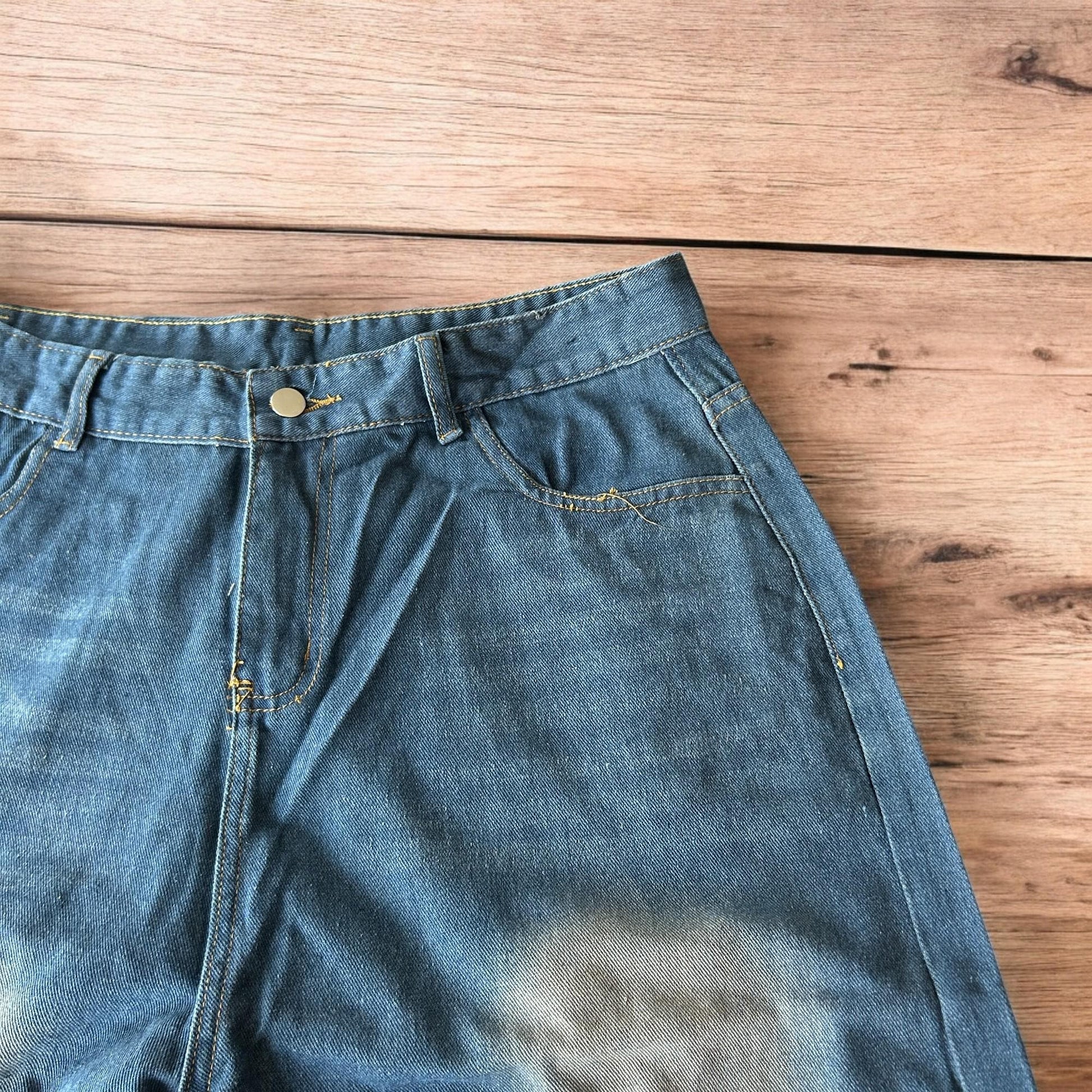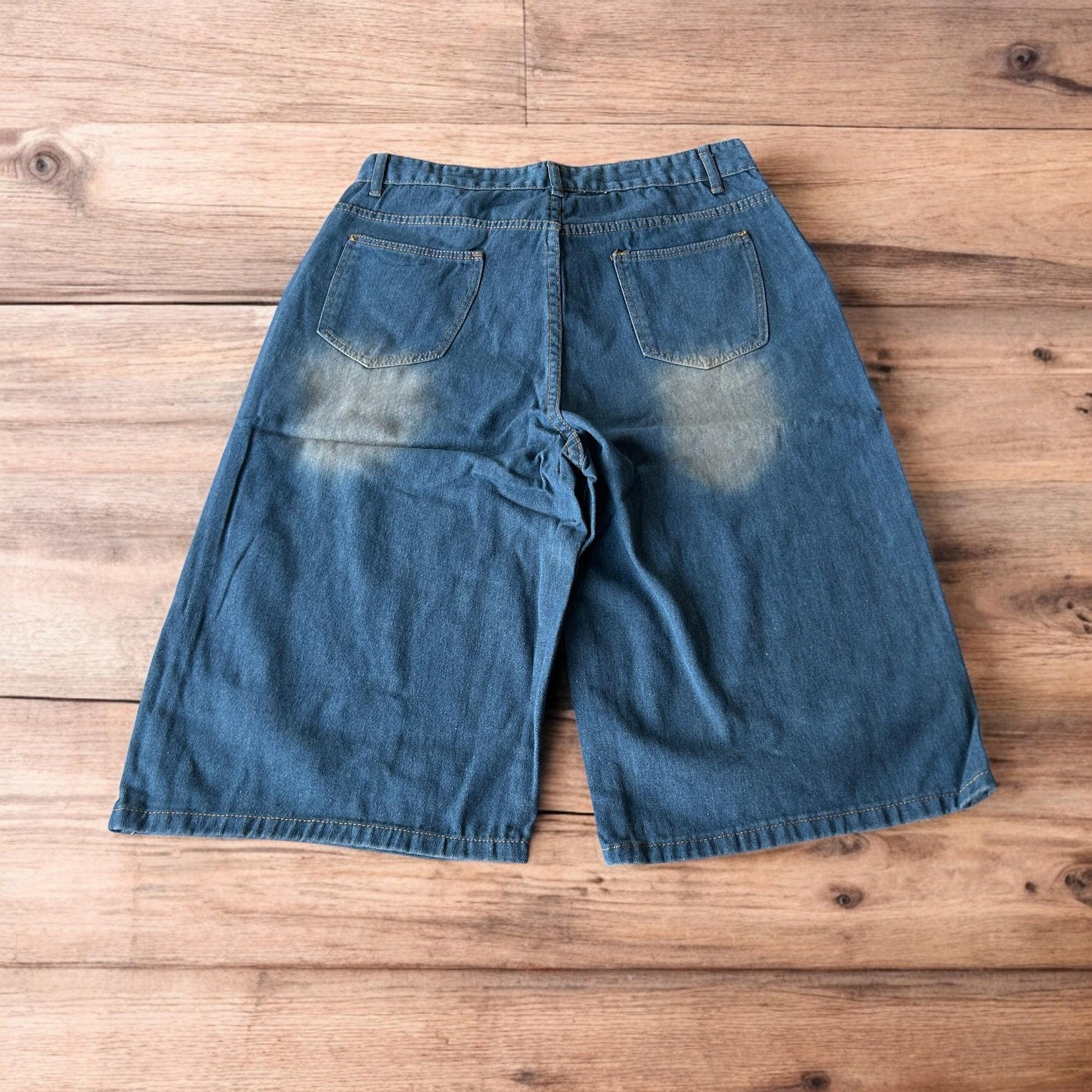 Incredible super baggy wide leg denim shorts jorts in dark blue wash.