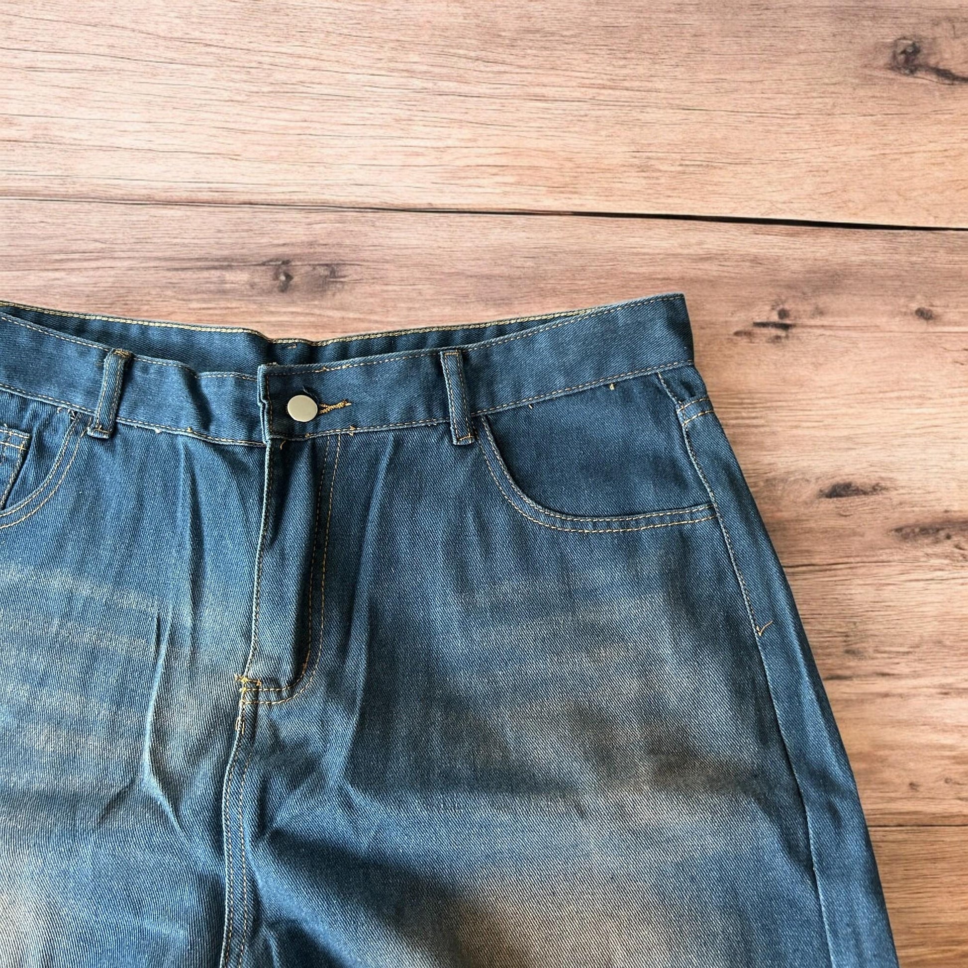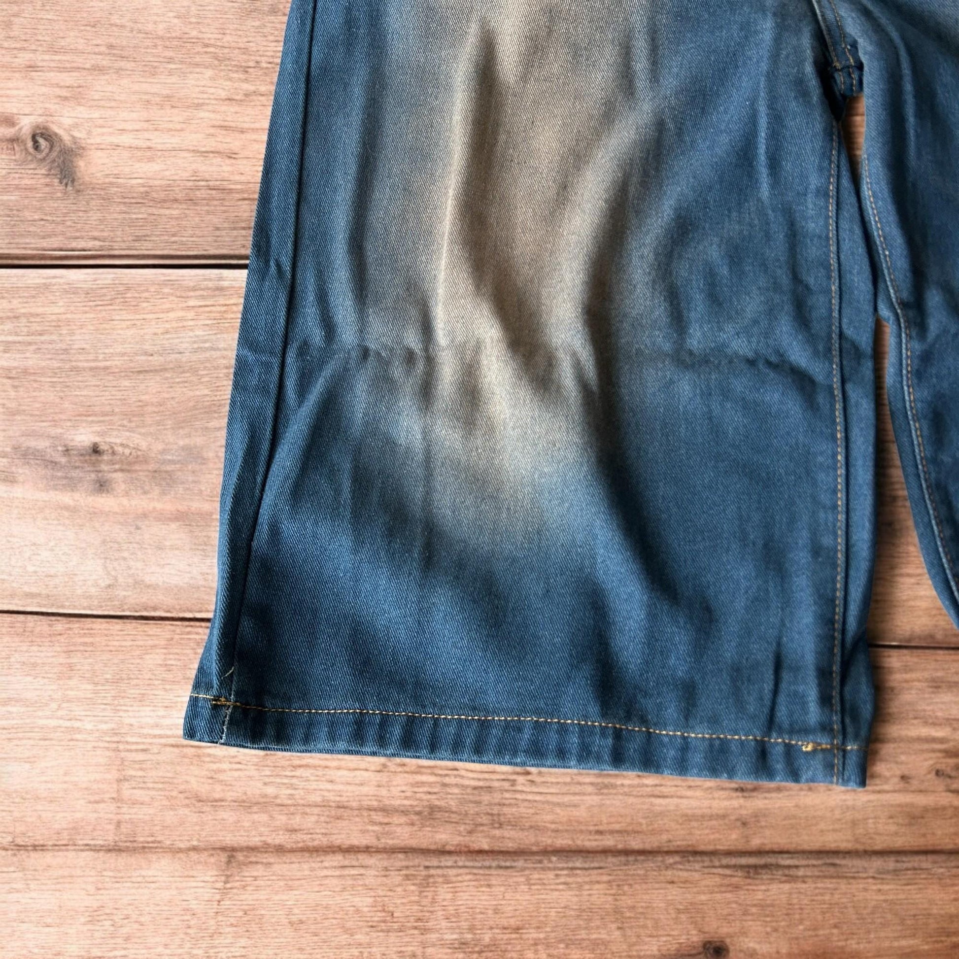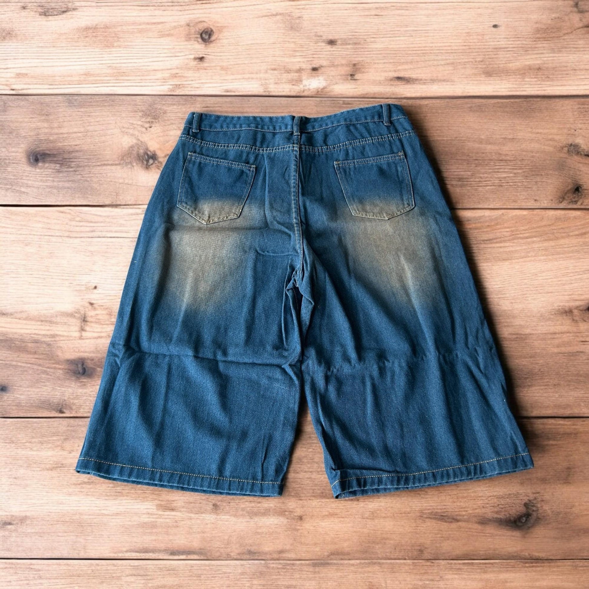 Incredible super baggy wide leg denim shorts jorts in dark blue wash.