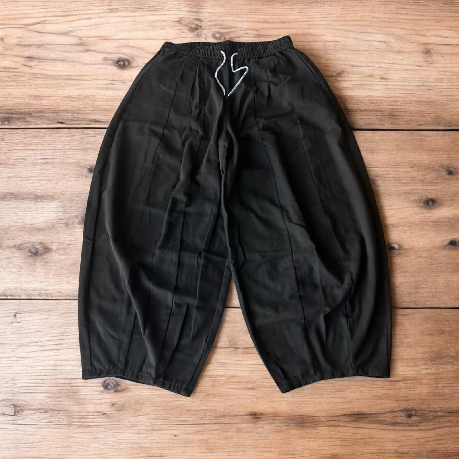 The BAGGIEST trousers ever and possibly my favourite Great condition. Super wide balloon leg. Baggiest trousers you'll own. Drawstring fully adjustable waist. Pockets. Korean Japanese vintage skater style. Thick canvas material. Also have in grey.