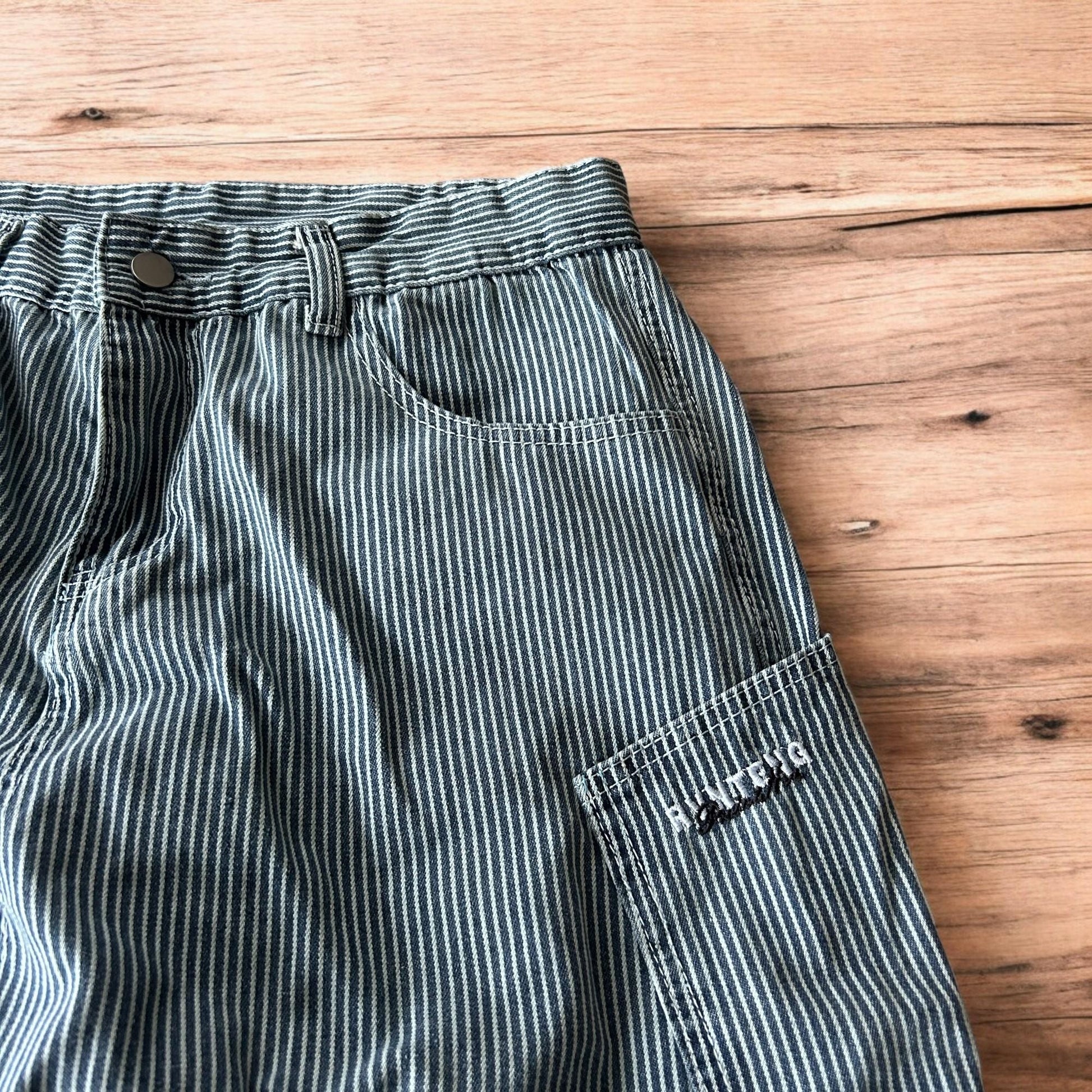 Incredible super baggy wide leg pinstripe cargo trousers in blue/white.