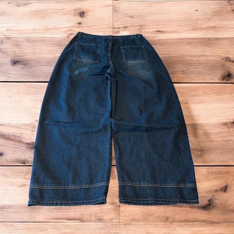 Incredible vintage style baggy wide leg skater fit jeans with fade in dark blue.
