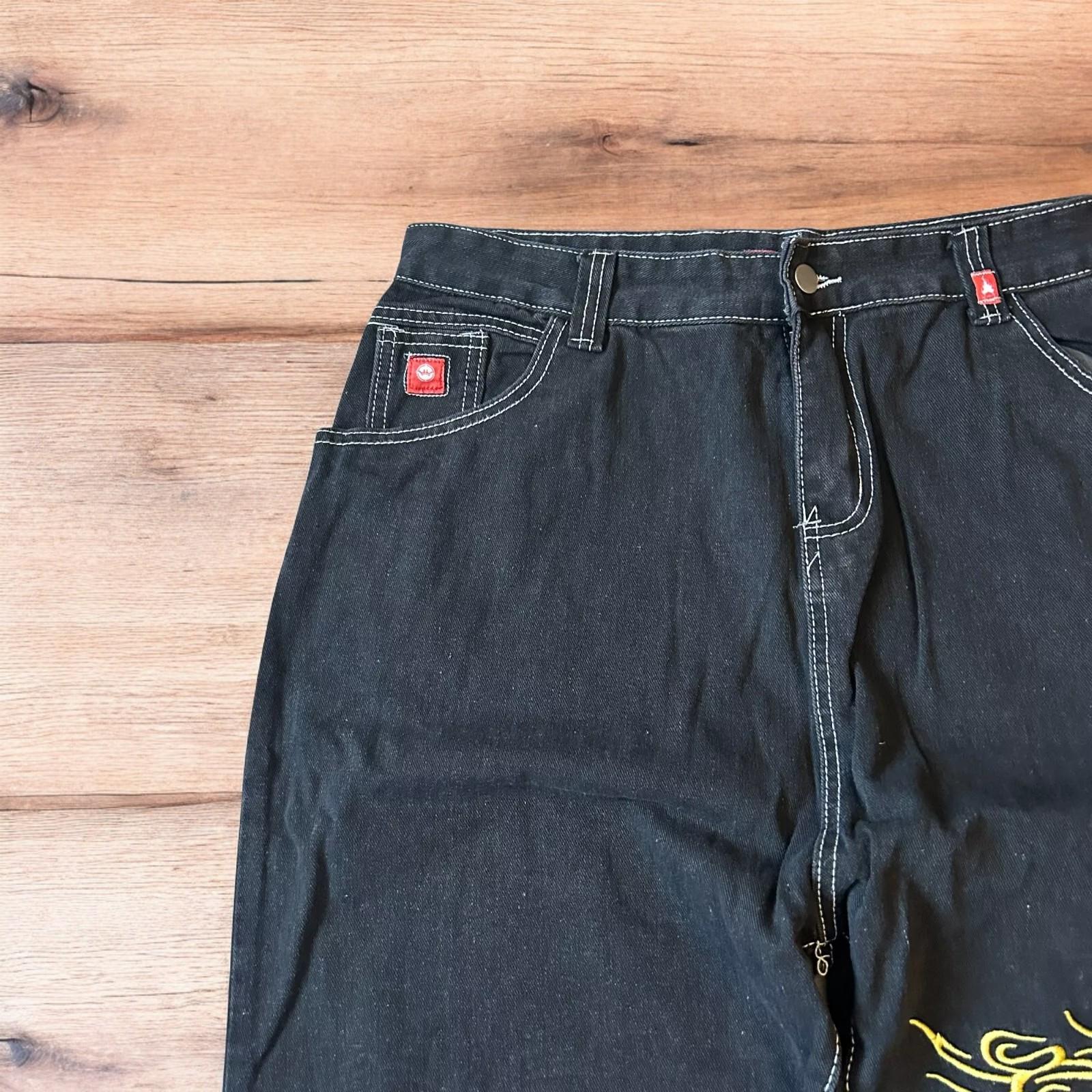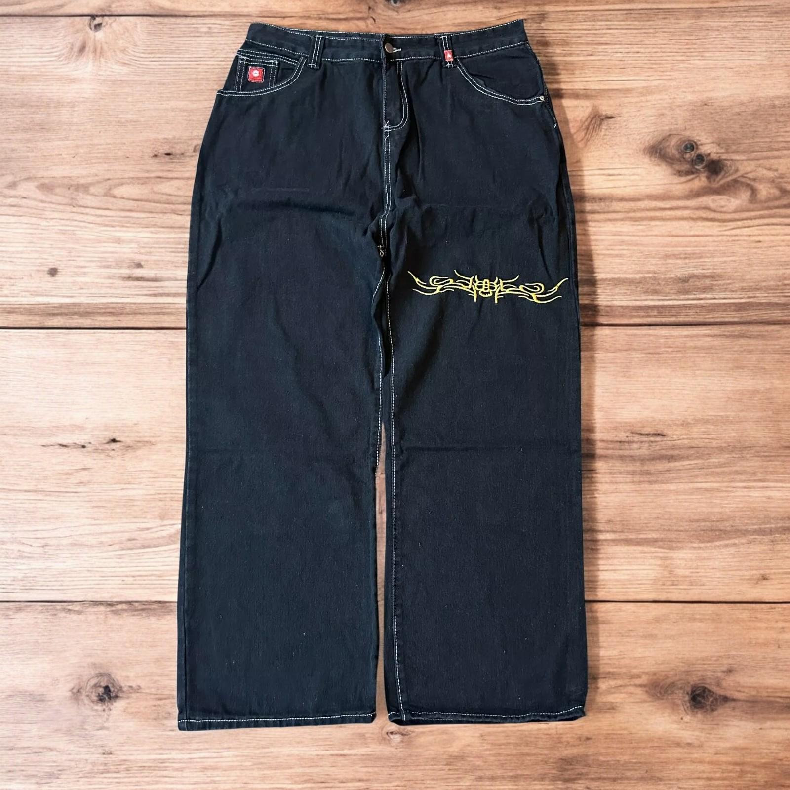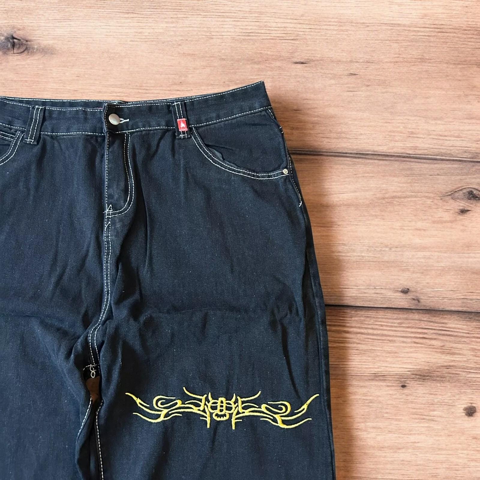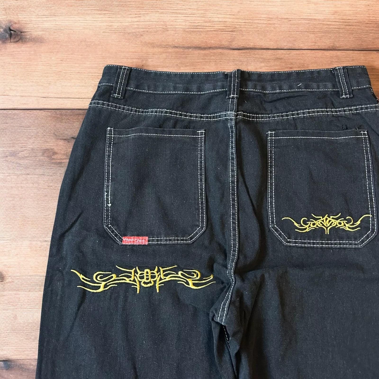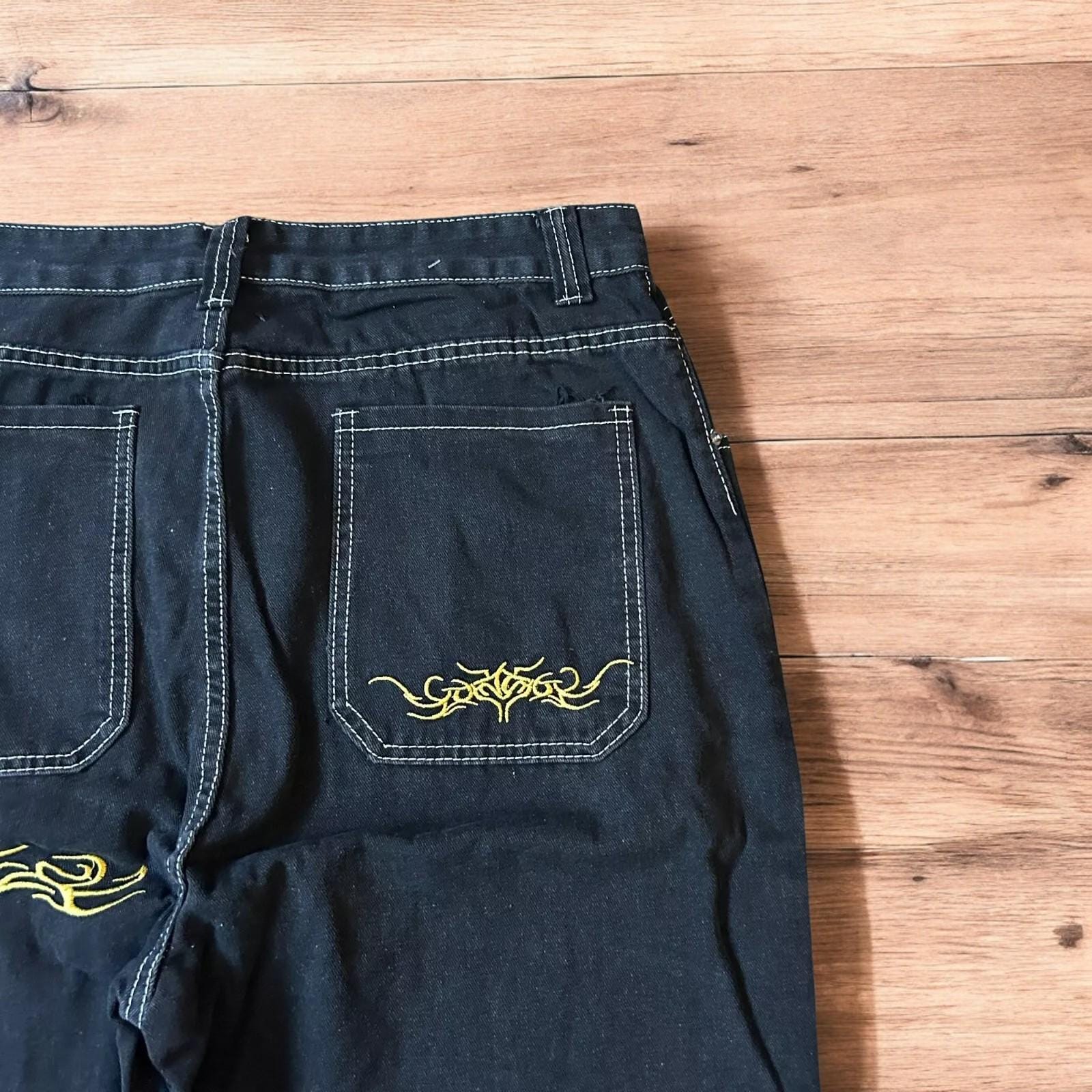 Insane baggy relaxed fit jeans in washed black with embroidery.