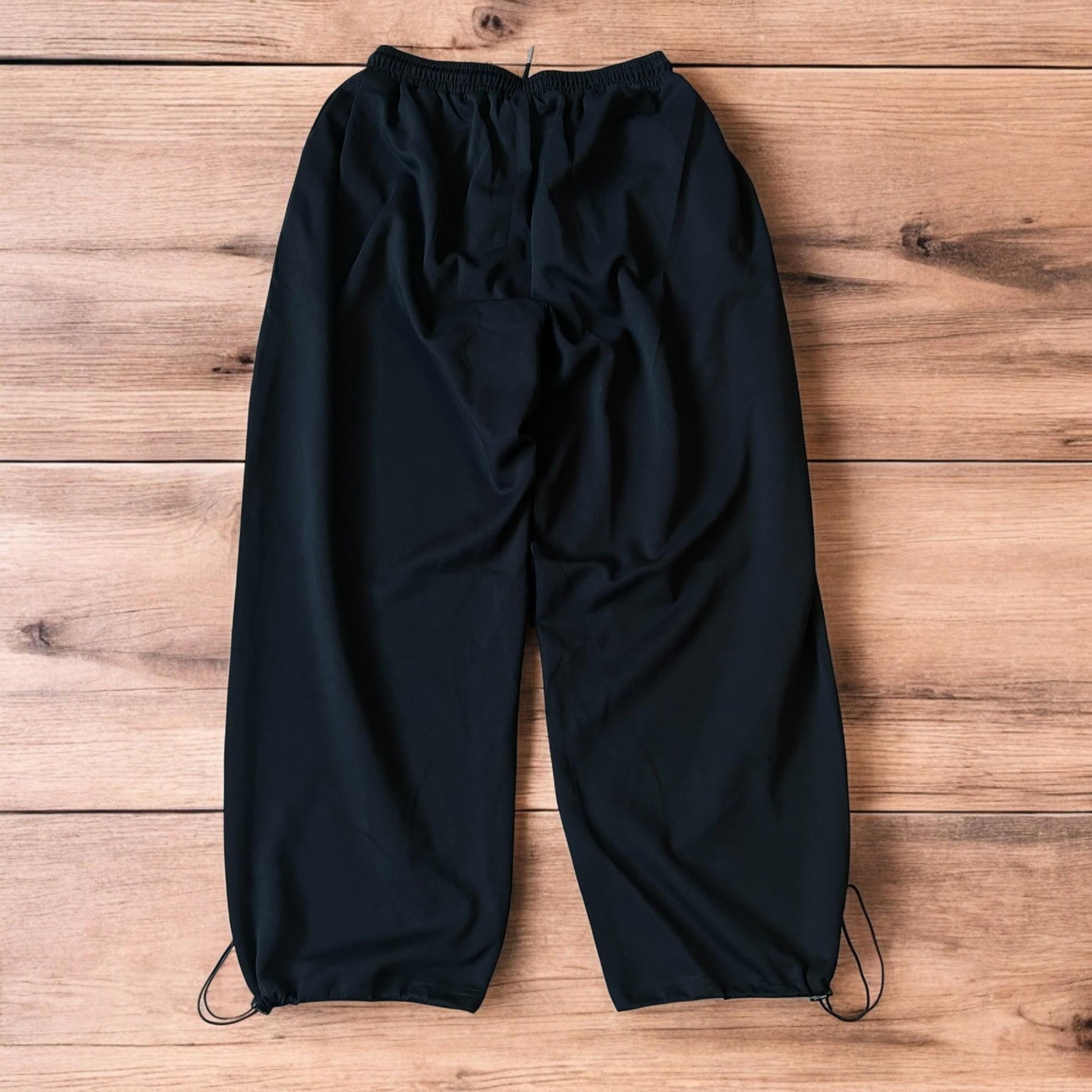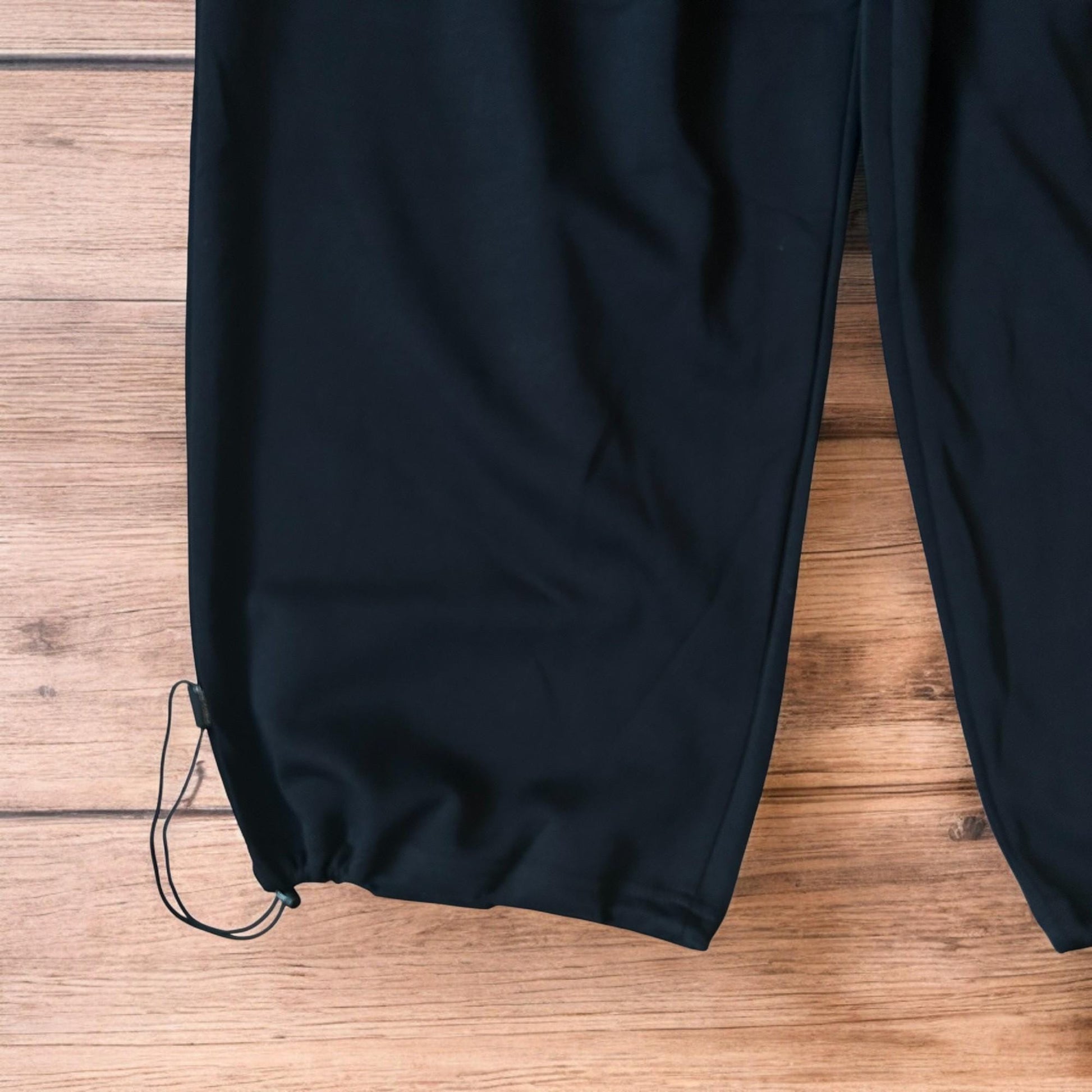 The BEST trackies joggers you'll own. Lovely soft flowy material. Toggles ankles. Drawstring waist. Massive wide baggy relaxed skater fit. Waist is very adjustable with the drawstring. Also have in marl grey.