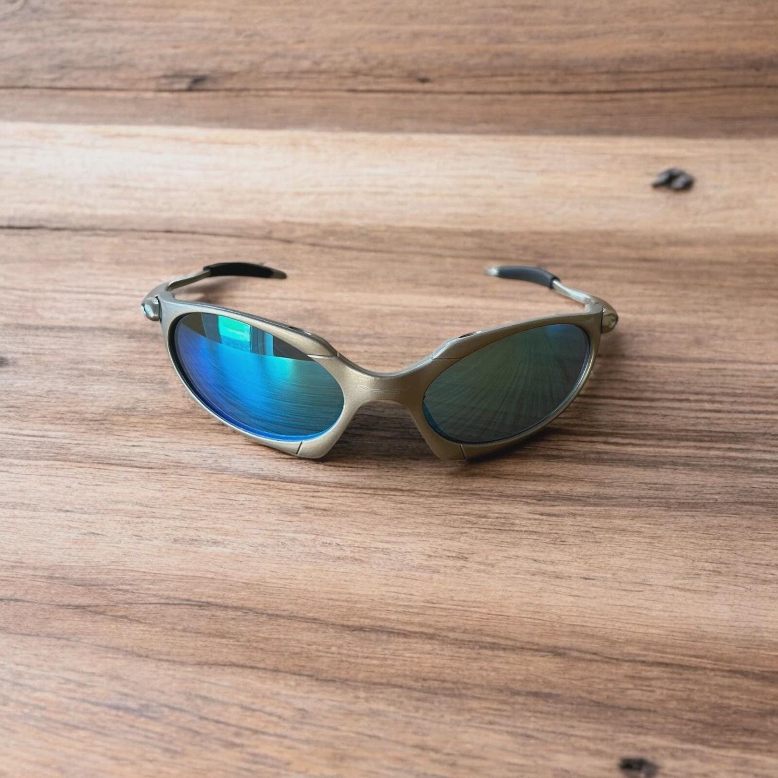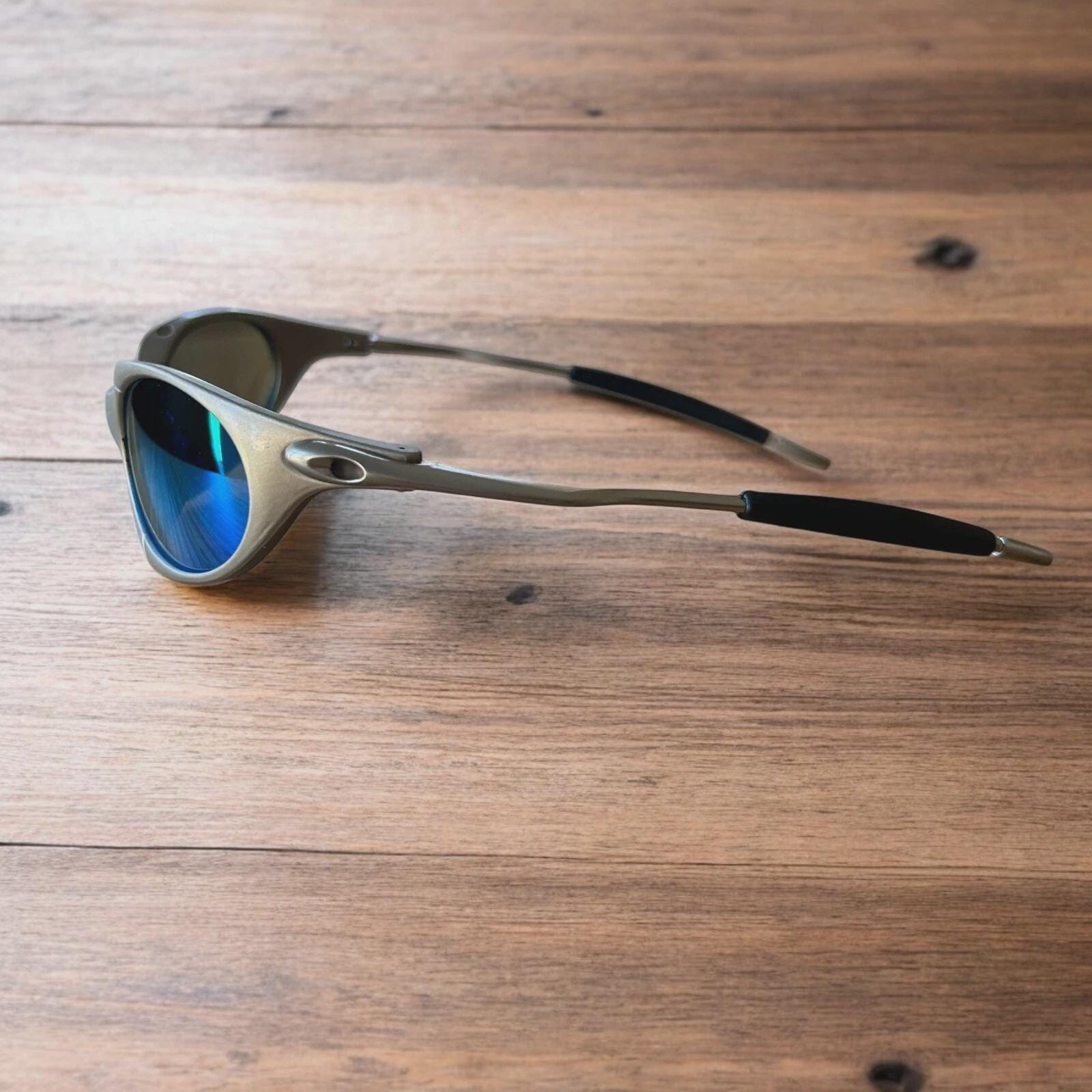 Insane metal frame sunglasses in silver with blue lense. One size.