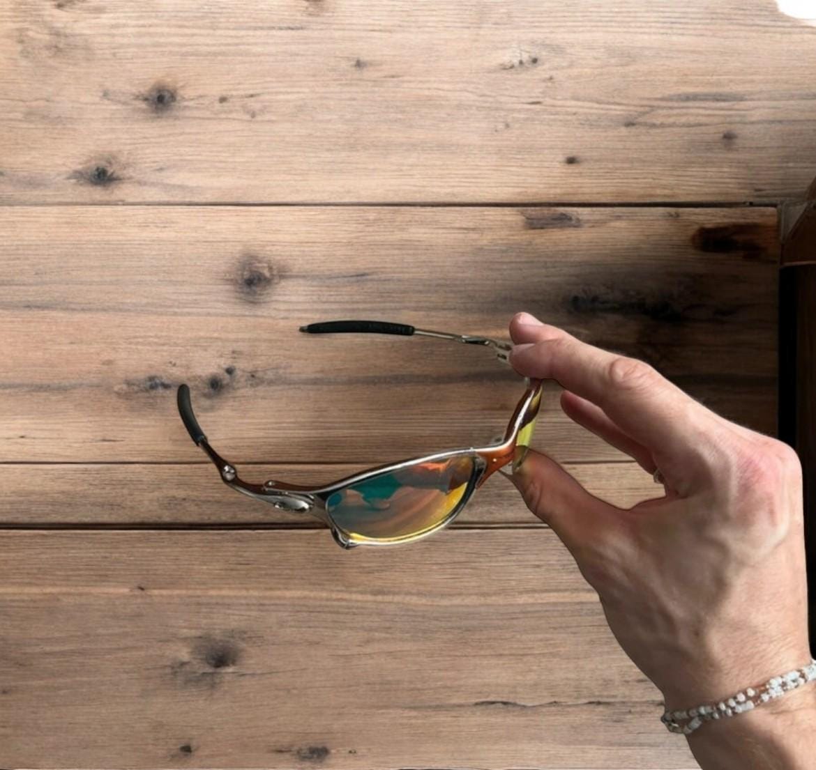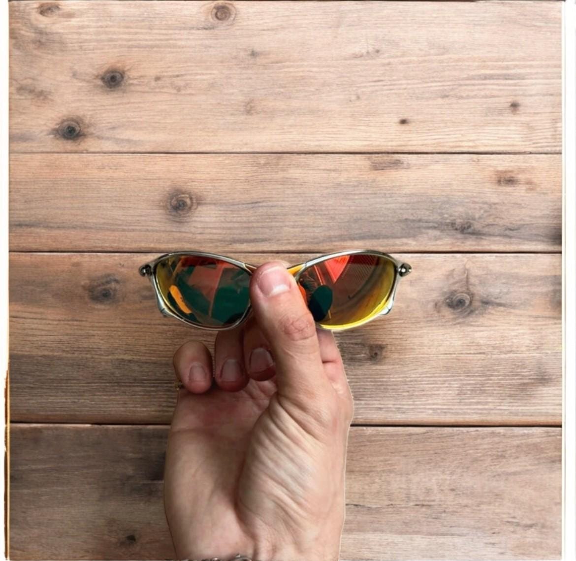 Insane metal frame sunglasses in silver with orange lense. One size.
