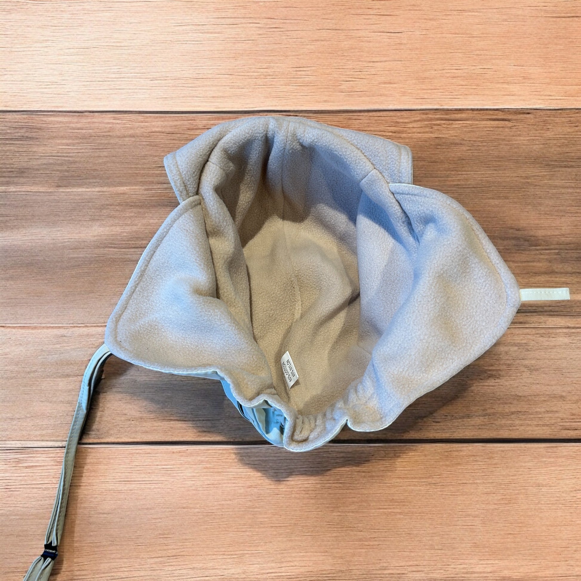 Great used condition. Adjustable elastic at the back allows for head sizes between 54cm - 60cm. Can be worn up as a trapper deer stalker hat or down as a Russian ear flap hat. Padded insulated fluffy warm water resistant material. Straps can be tied. Vintage Korean Japanese style. Also have in khaki green and black.