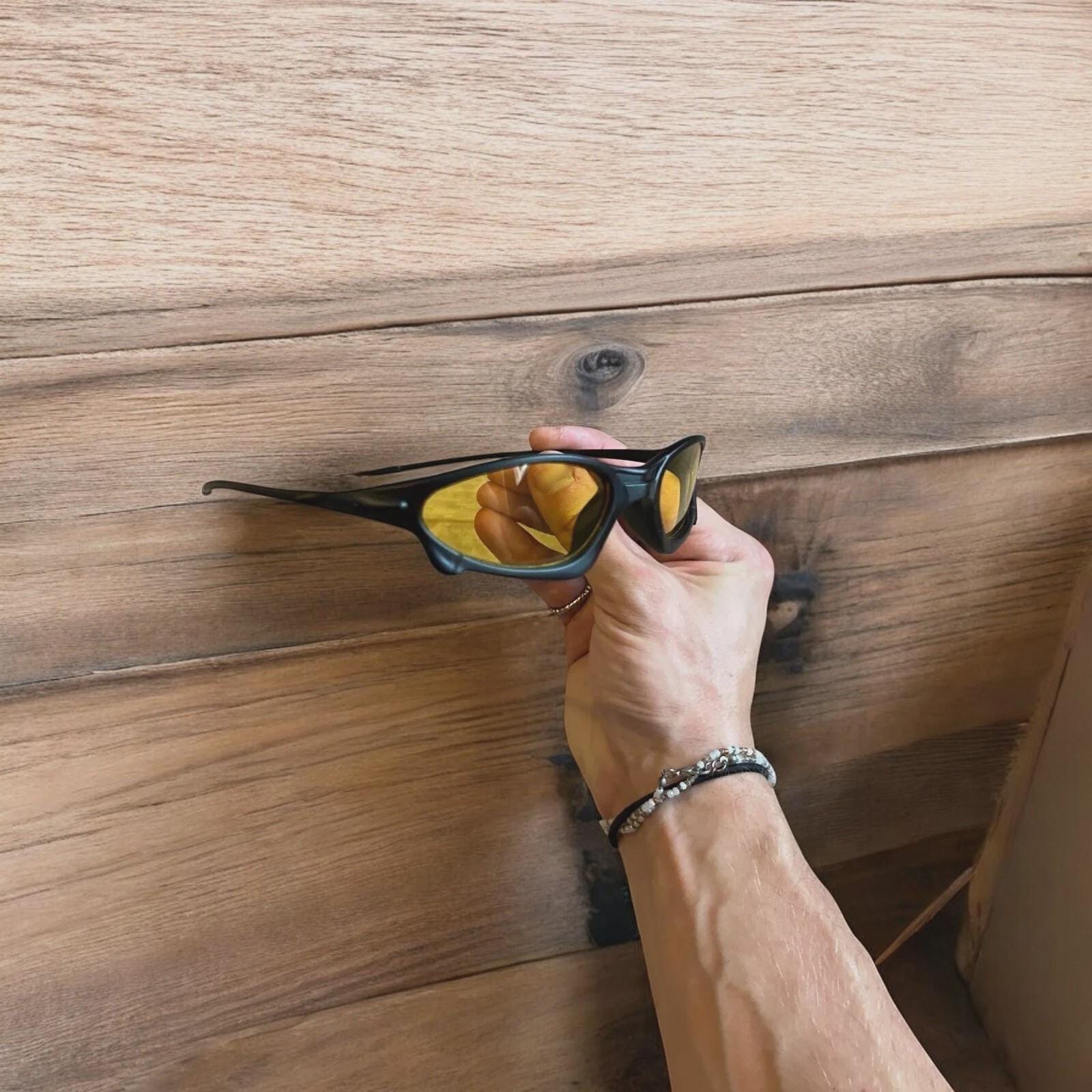 Insane polarised sunglasses in black with yellow lense. One size.