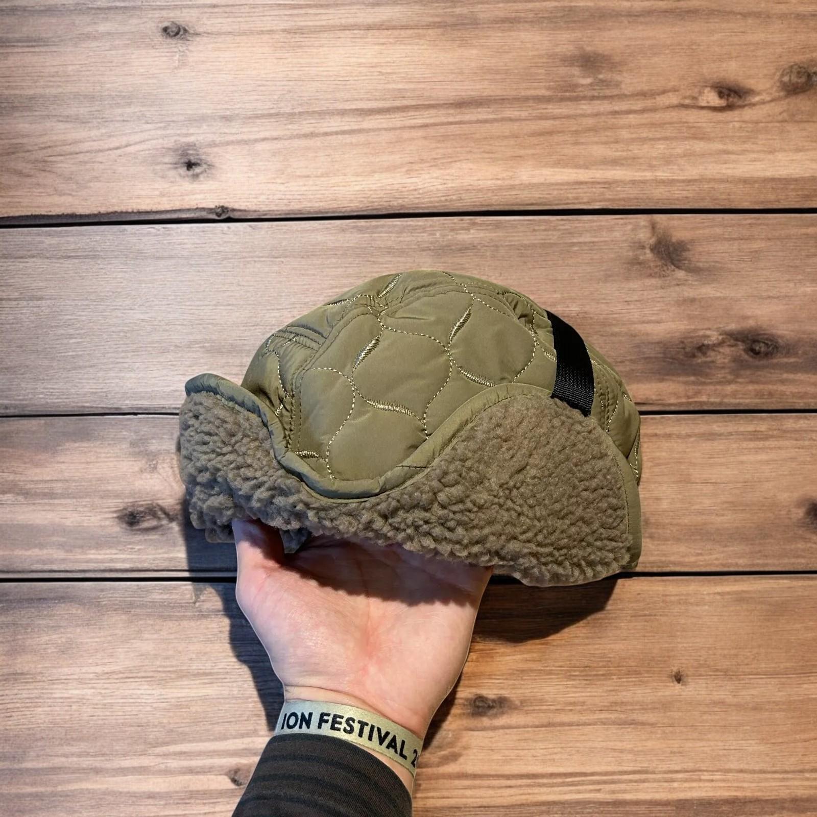 Insane Russian Trapper Korean padded fluffy hat cap in khaki green. One size.