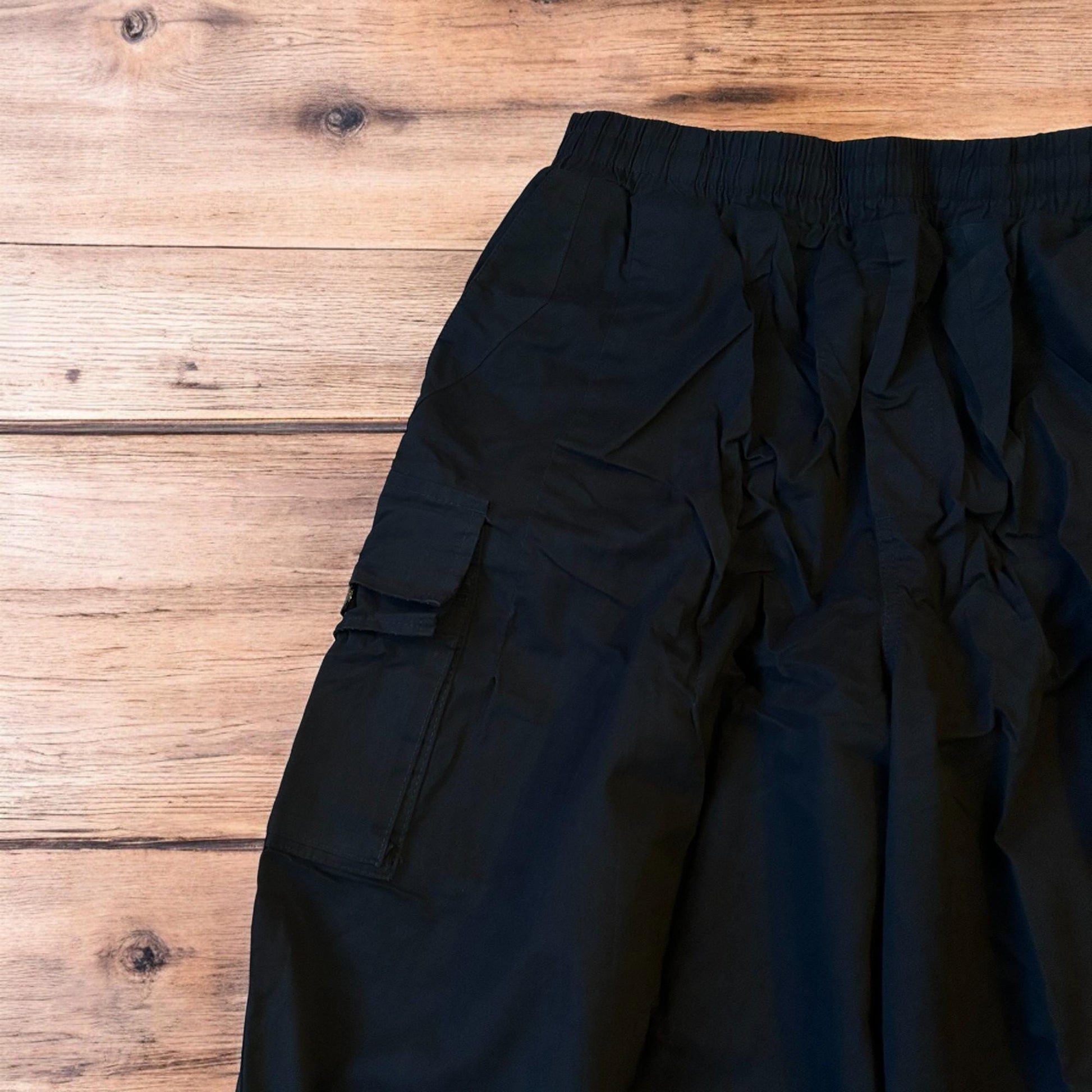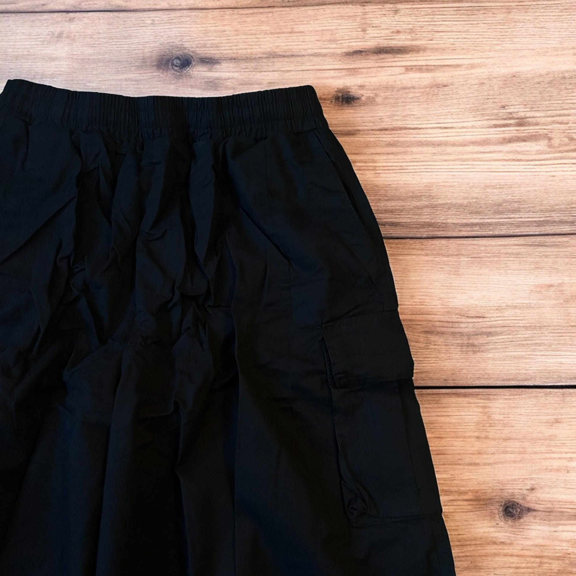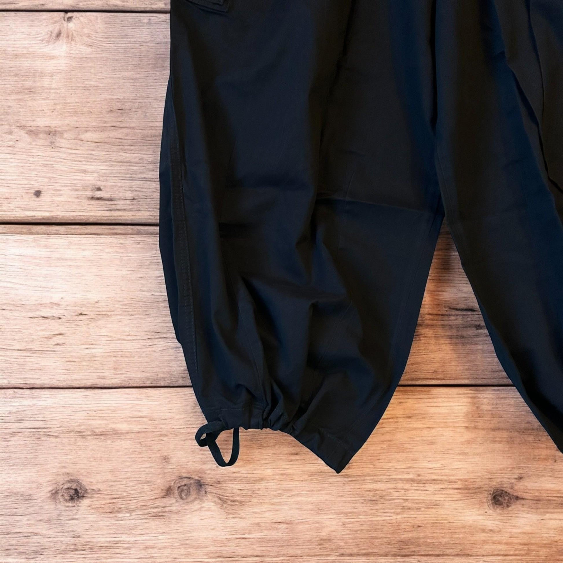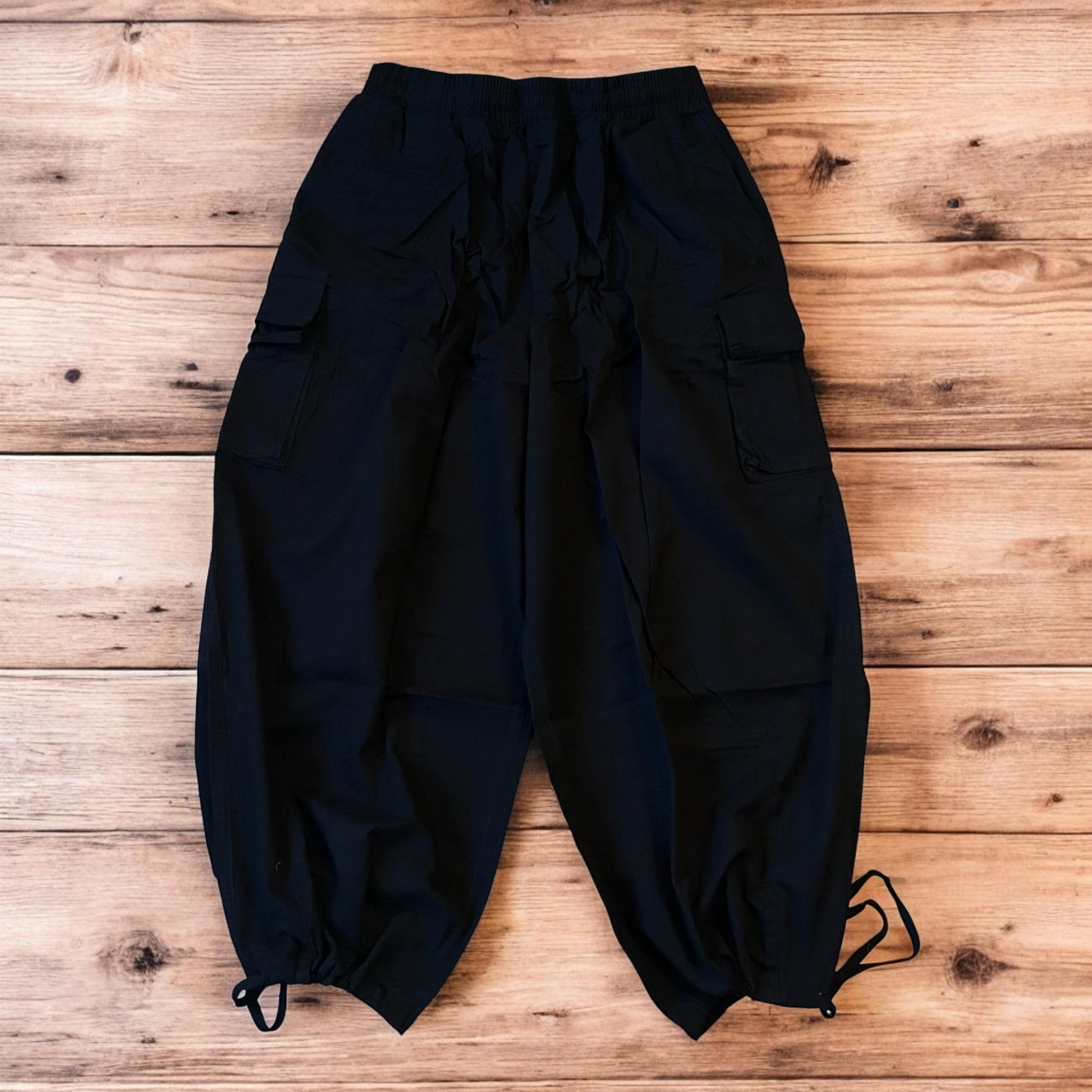 Insane super baggy wide leg Korean cargo parachute trousers in black.