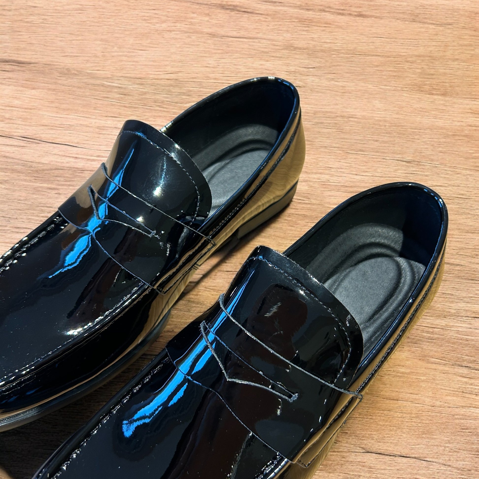 Great used condition as shown. Extremely comfy with padded insole. Rubber heel for support. Black faux leather loafers, boat shoes. Can be dressed up for smart occasions or down casually. Shiny polished look. Unbranded. Vintage style.