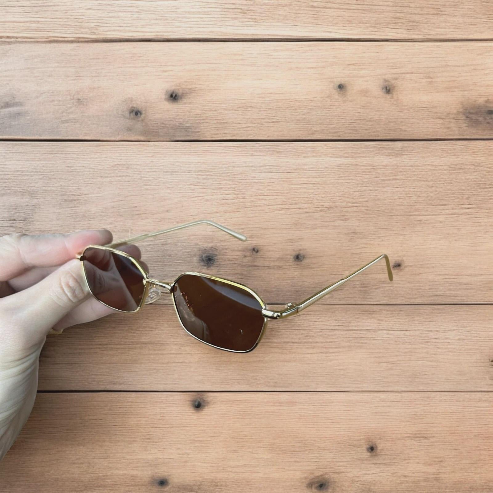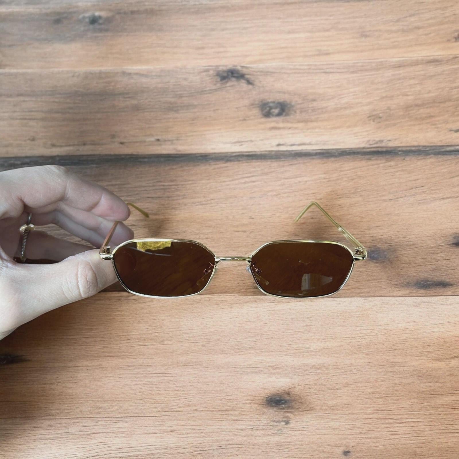 Lovely metal frame polarised sunglasses in gold with brown lense. One size.