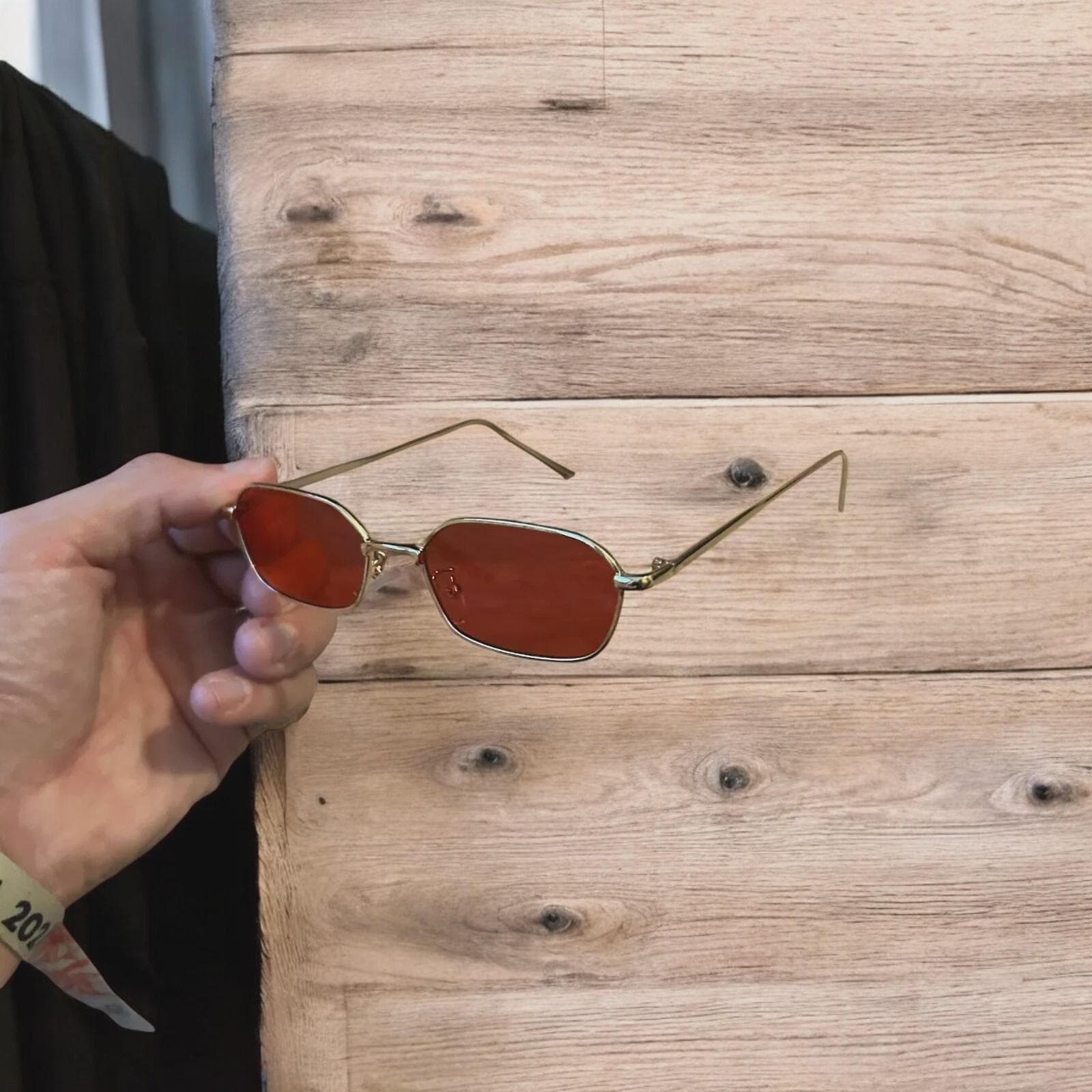 Lovely metal frame polarised sunglasses in gold with red lense. One size.