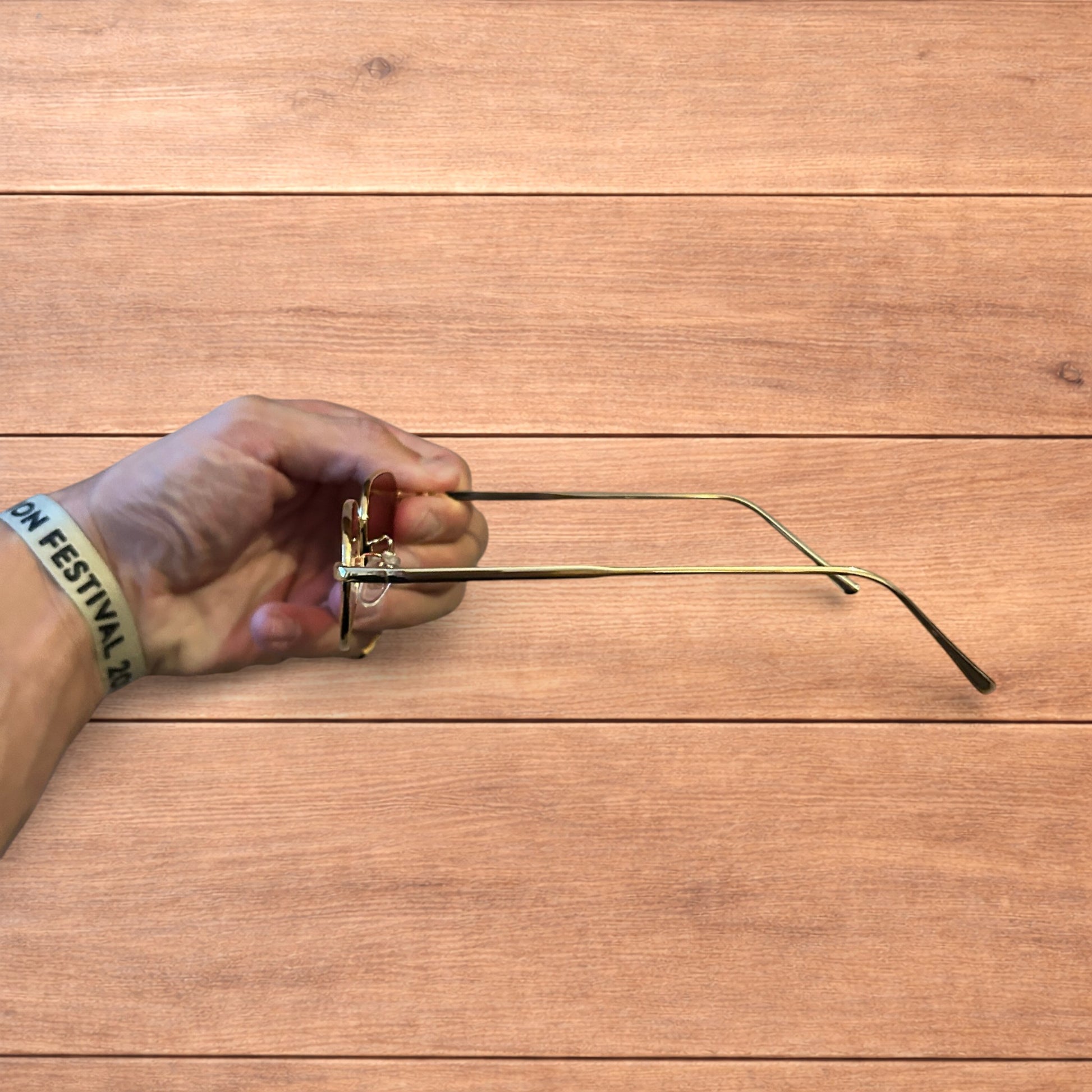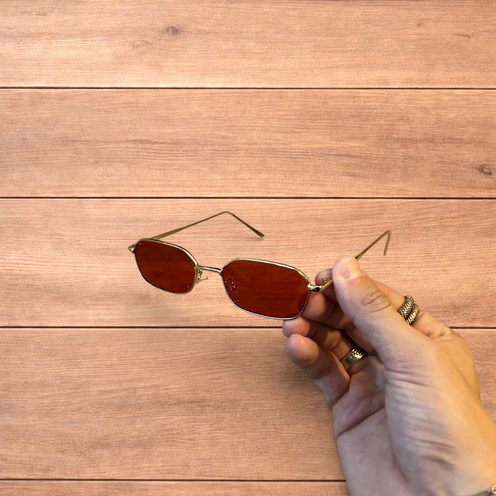 Lovely metal frame polarised sunglasses in gold with red lense.
