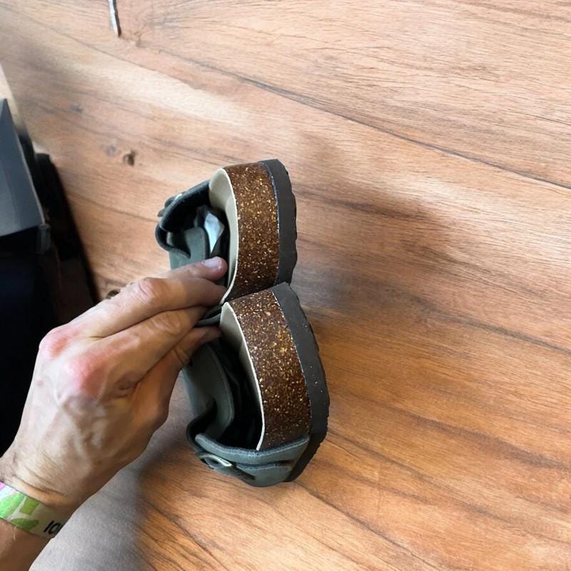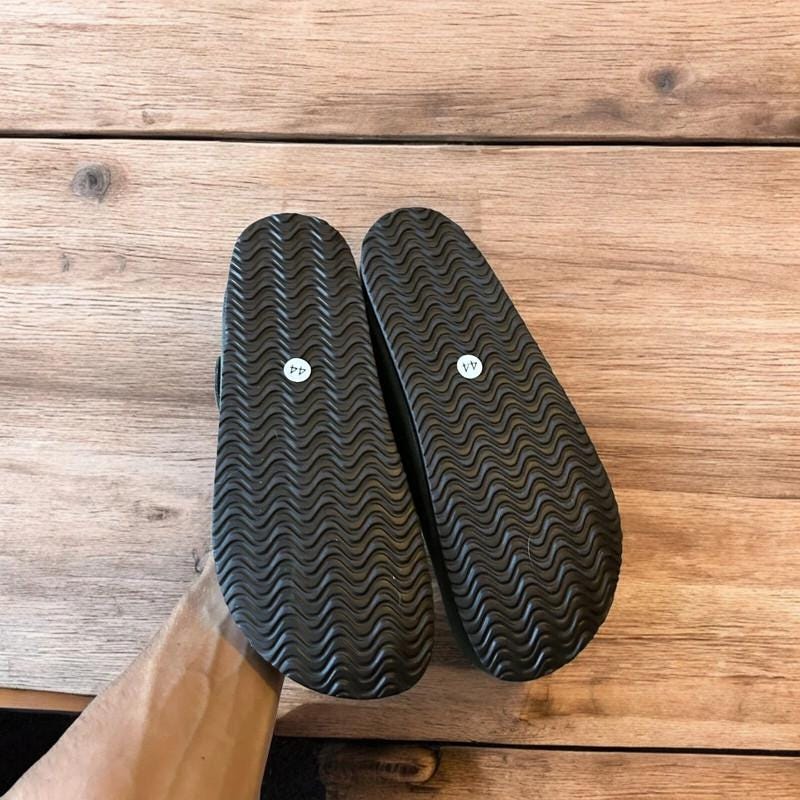 Great used condition as shown. Hardly worn. Very comfy fit with faux cork base.