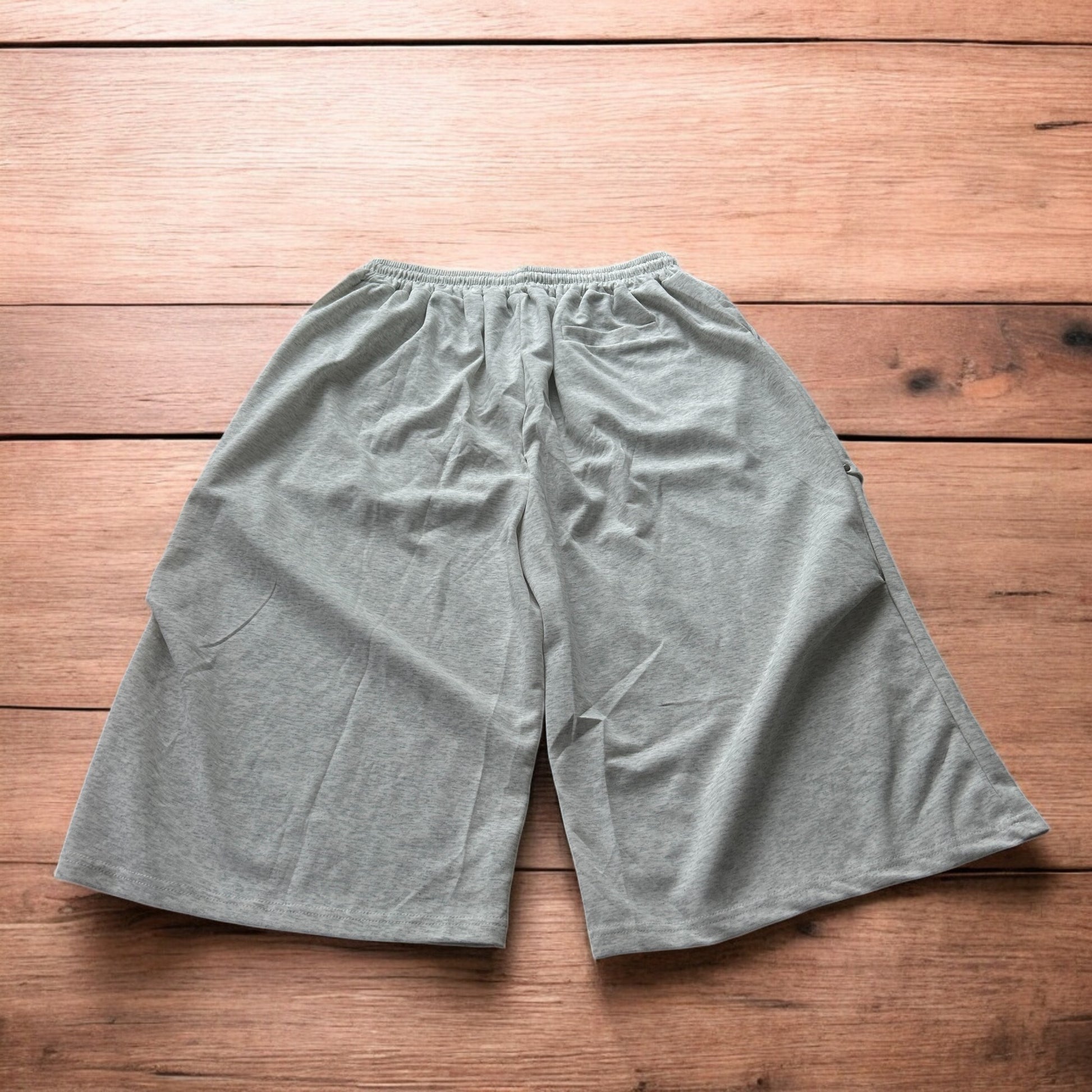 Lovely super baggy wide leg long jersey shorts jorts in light marl grey.