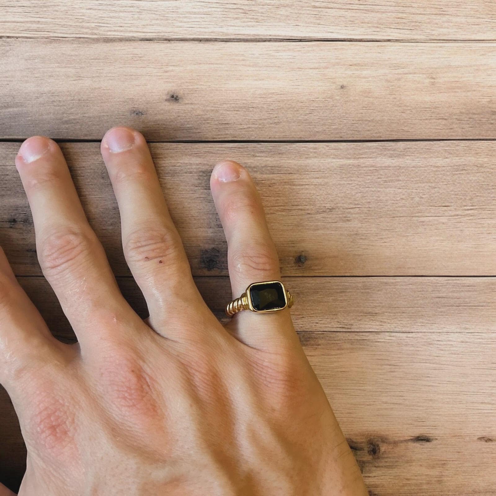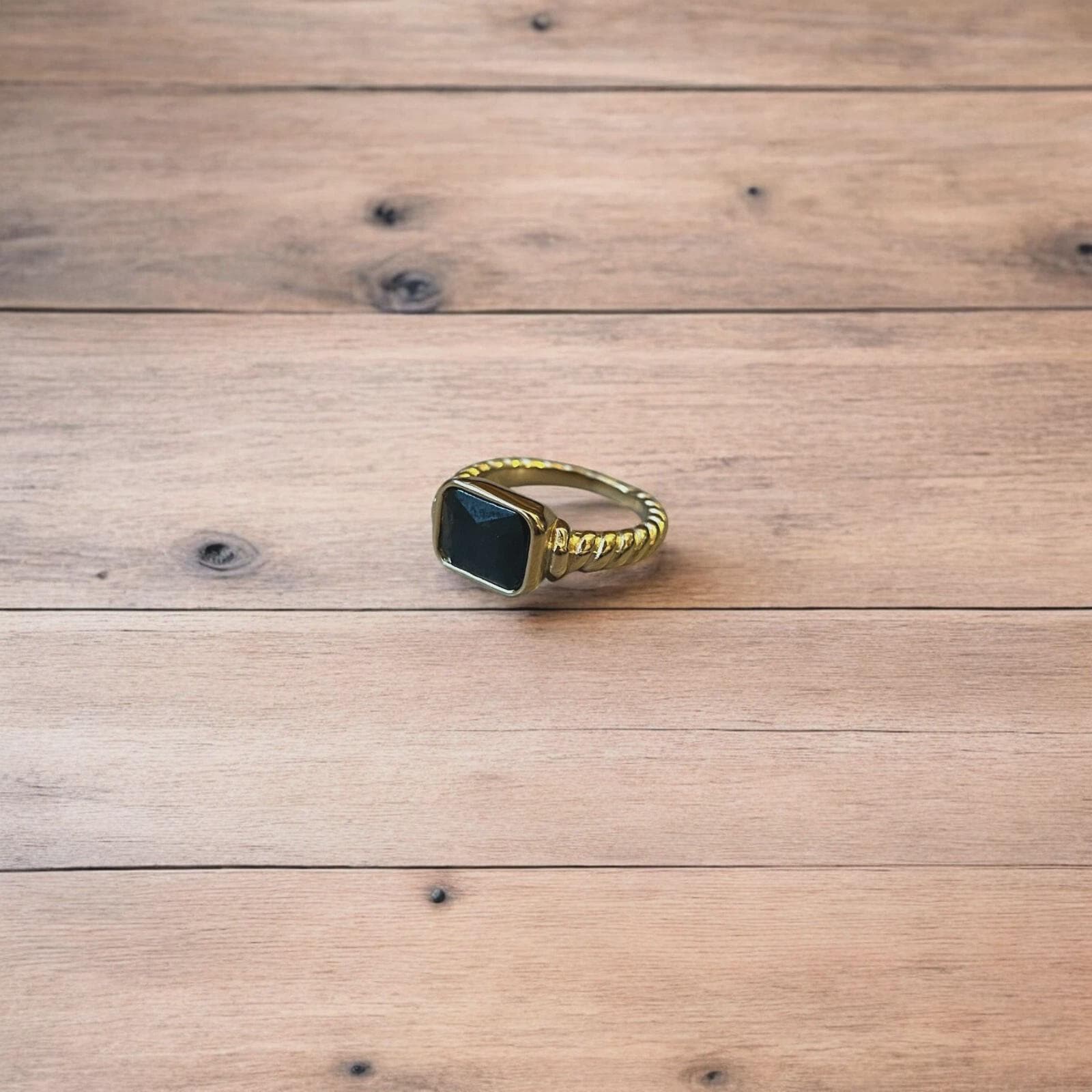 Lovely vintage style gold ring with black gemstone.