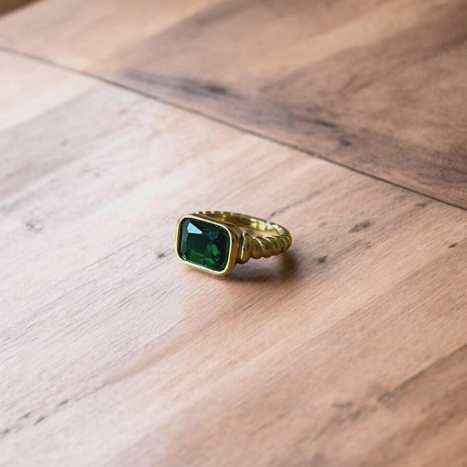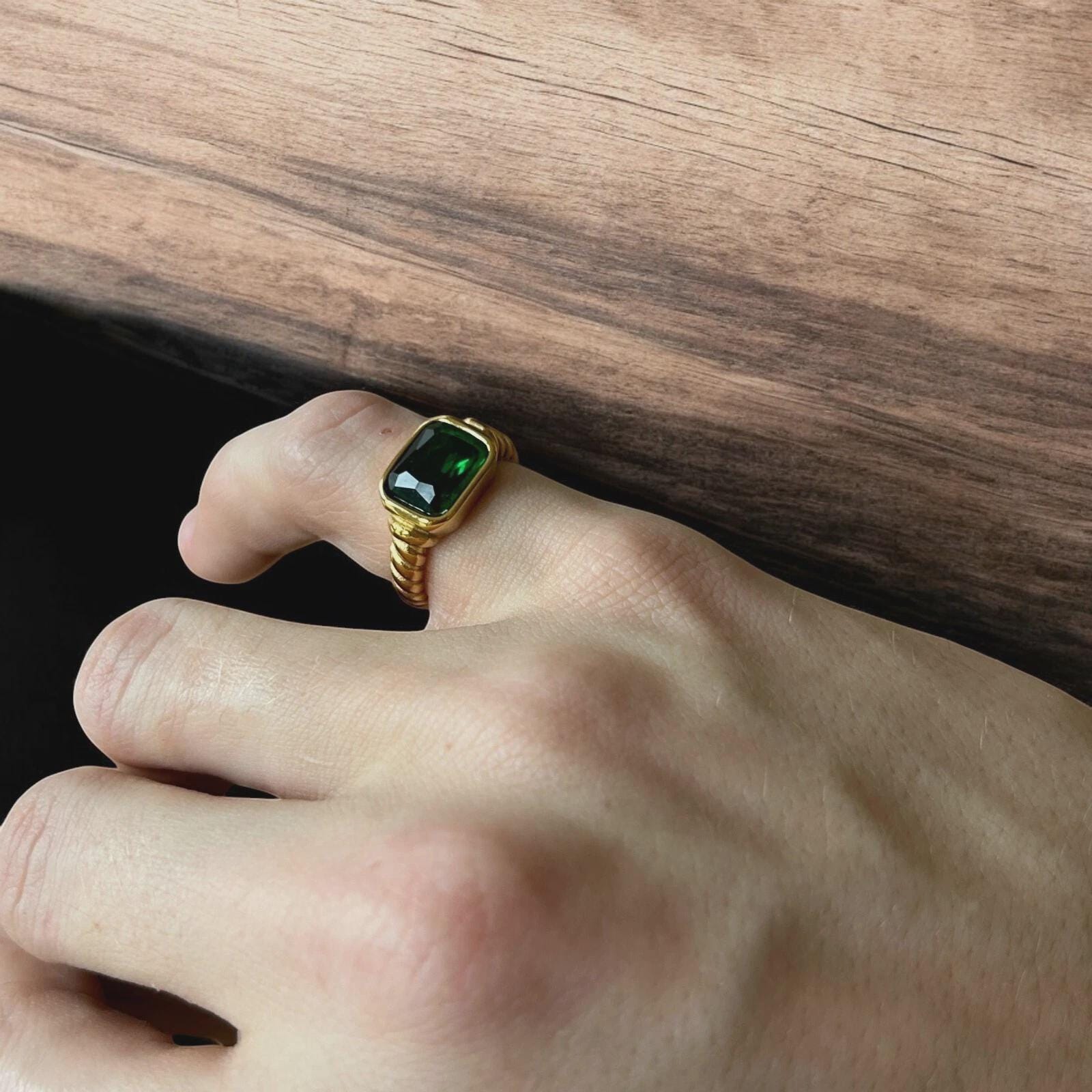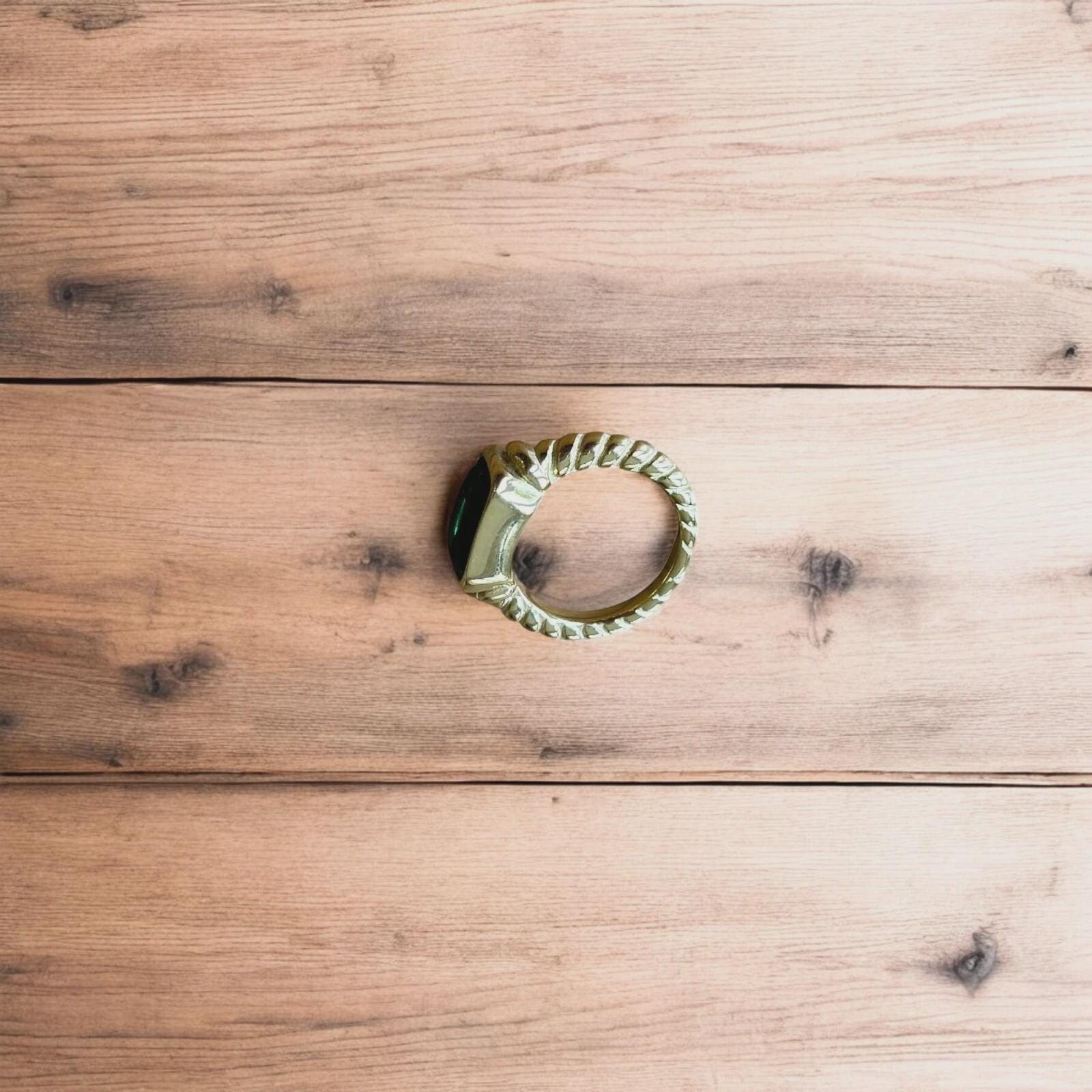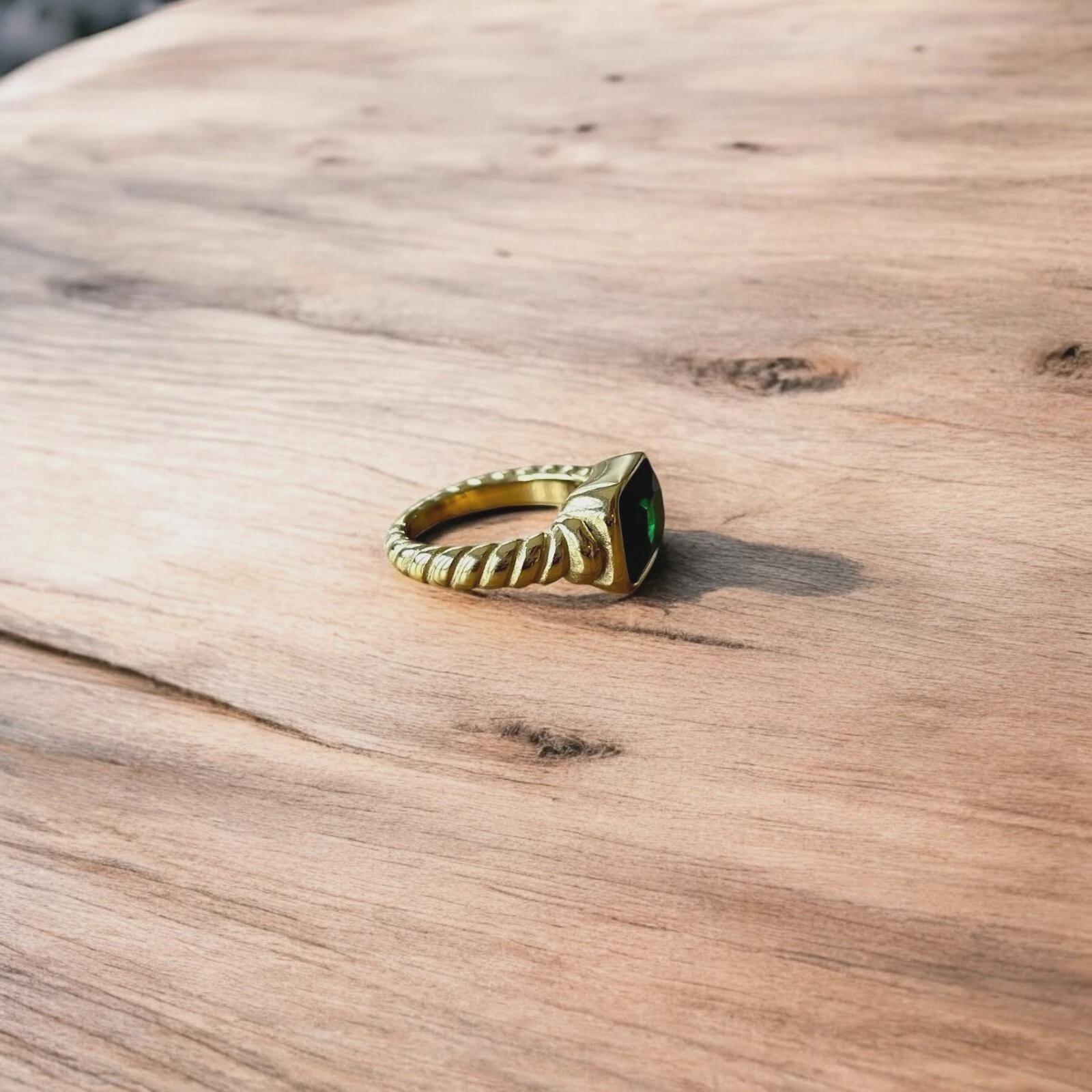 Great used condition. Boho 80s 90s design. Looks great on pinky finger. Signet ring. Emerald. All sizes.