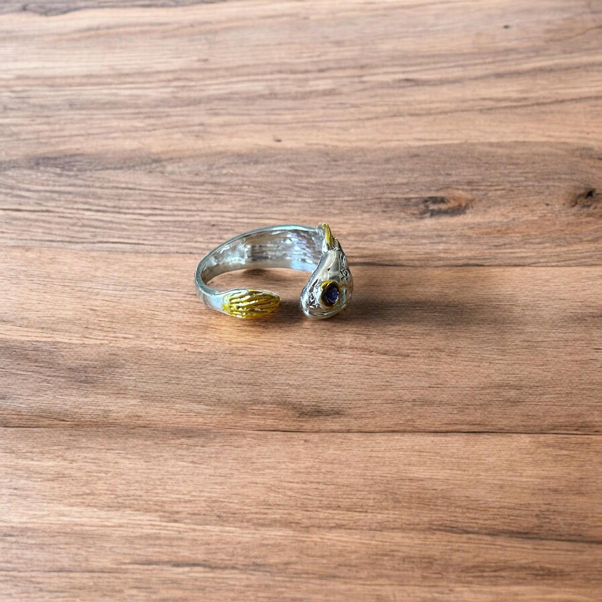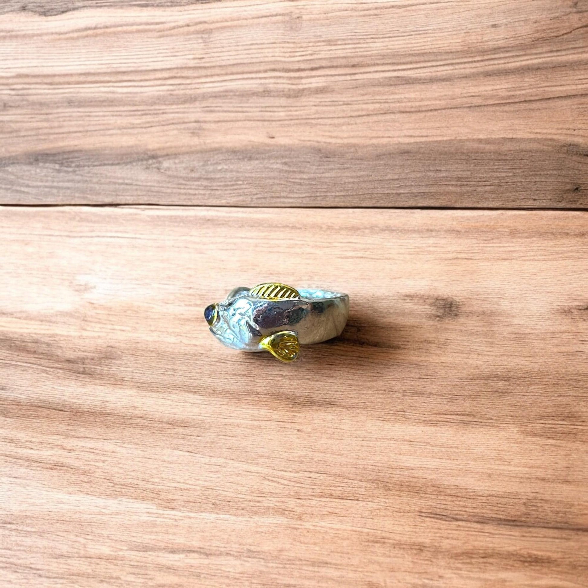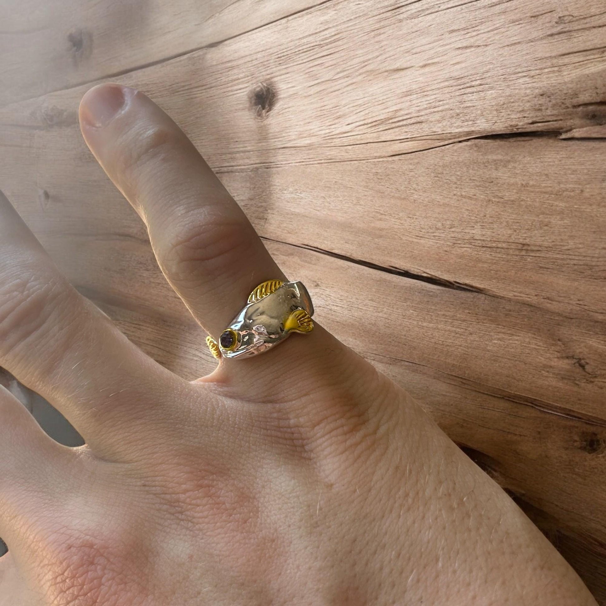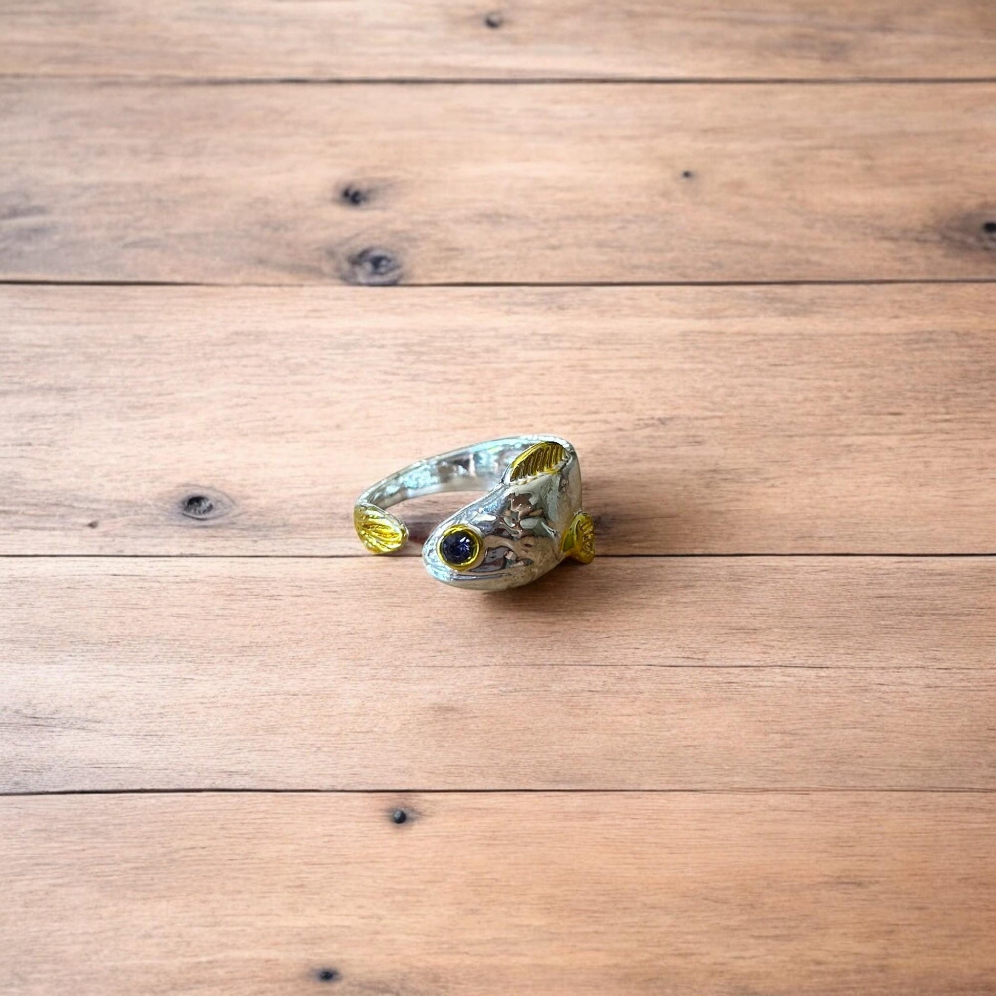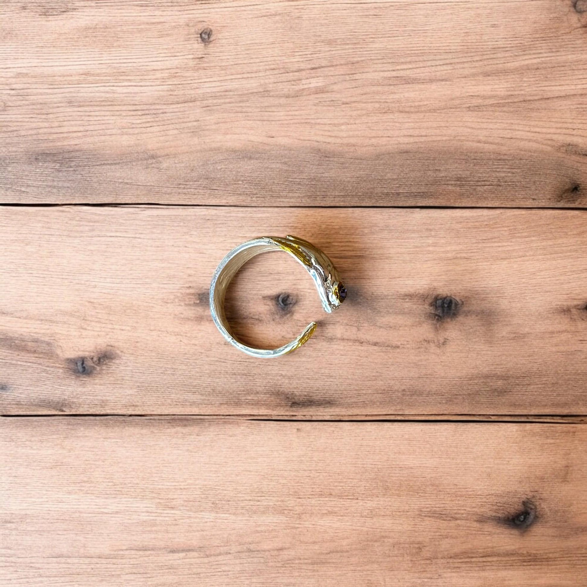 Lovely vintage style retro fish ring in silver/gold. One size.