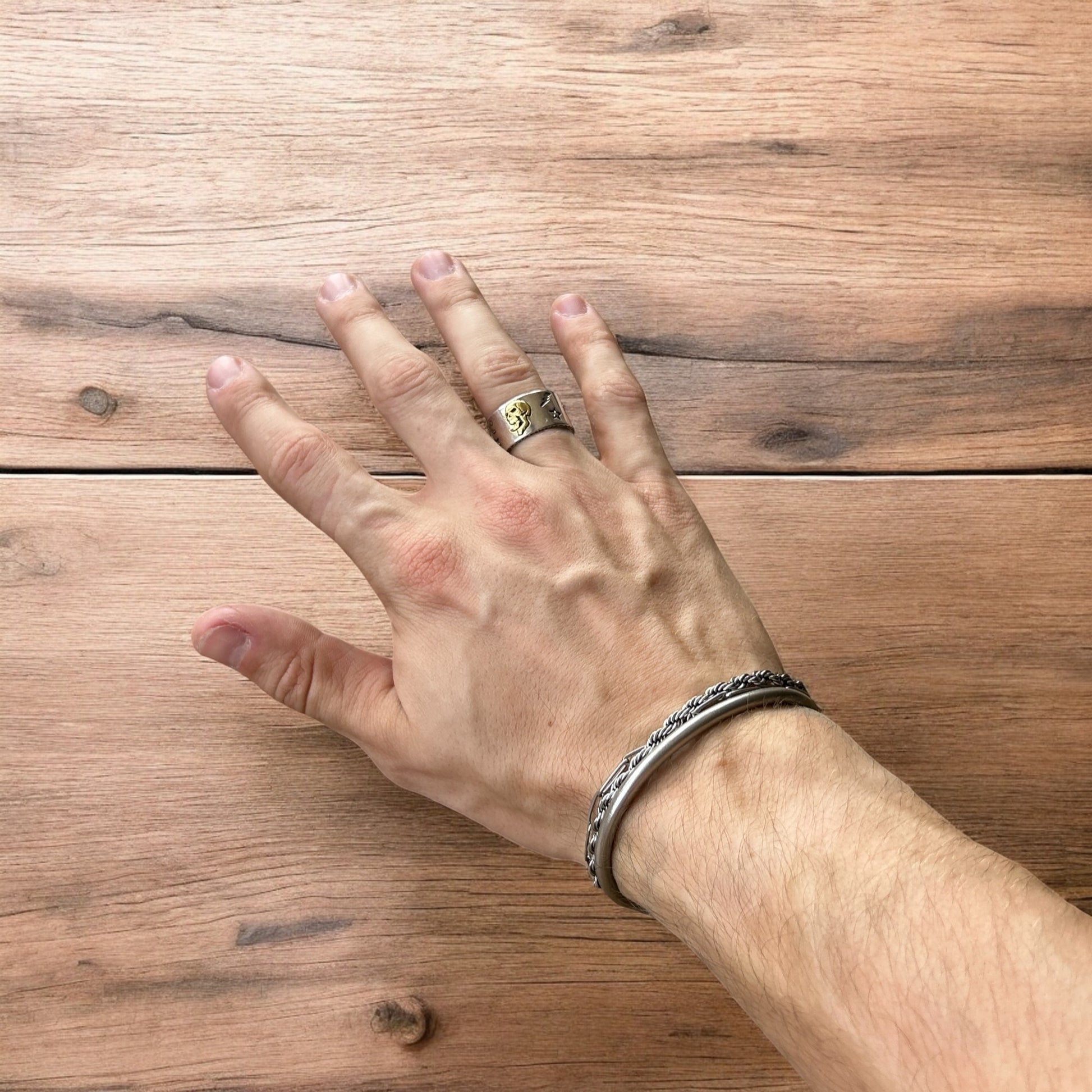 Great condition. Gold, silver and black design. Gothic, skater, retro style. Strong resistant stainless steel material. Unisex Fully adjustable - can be resized