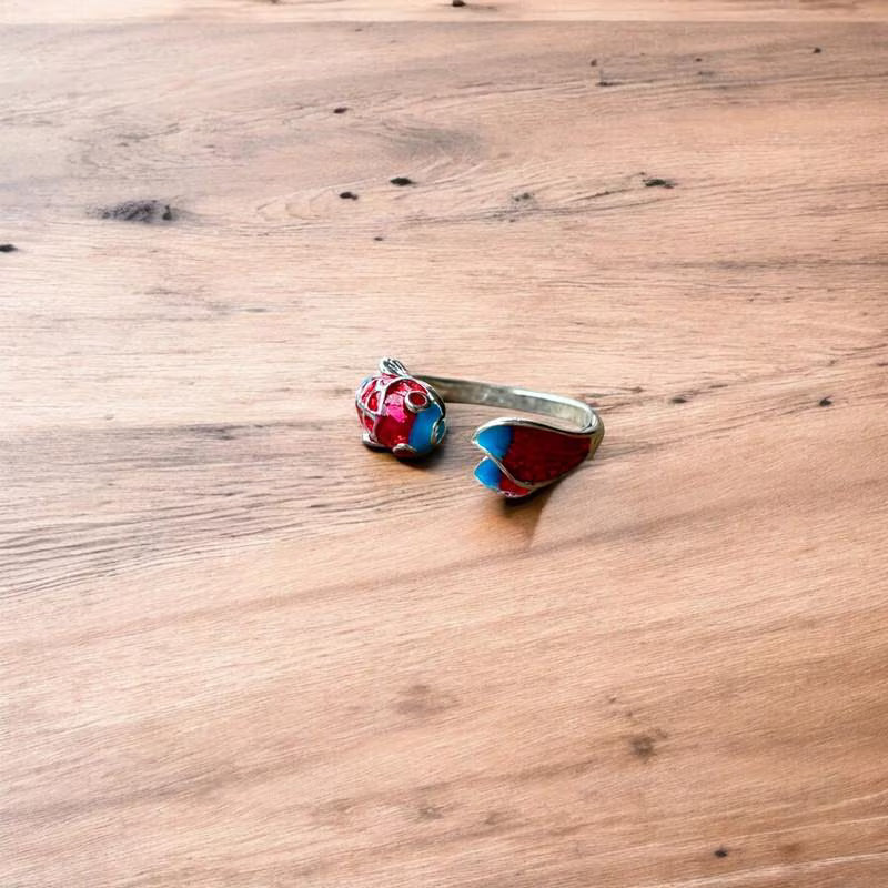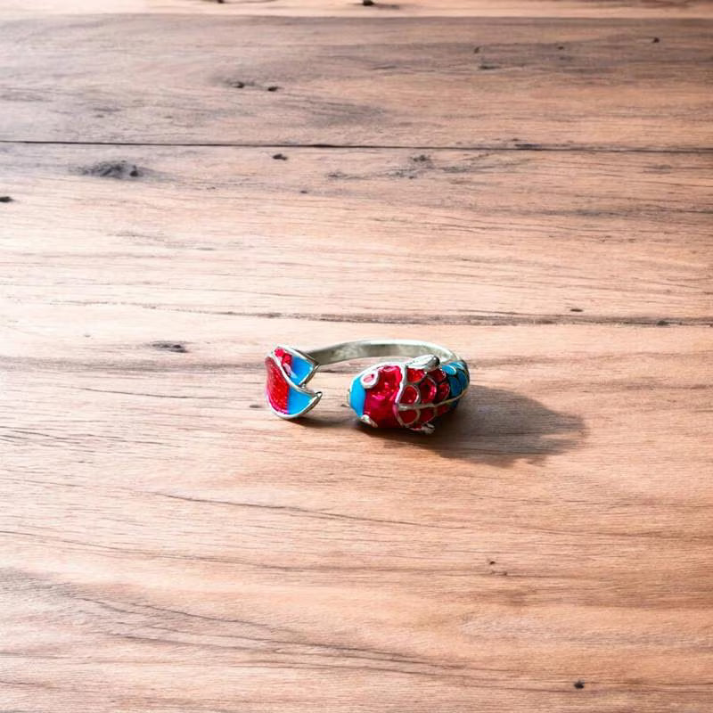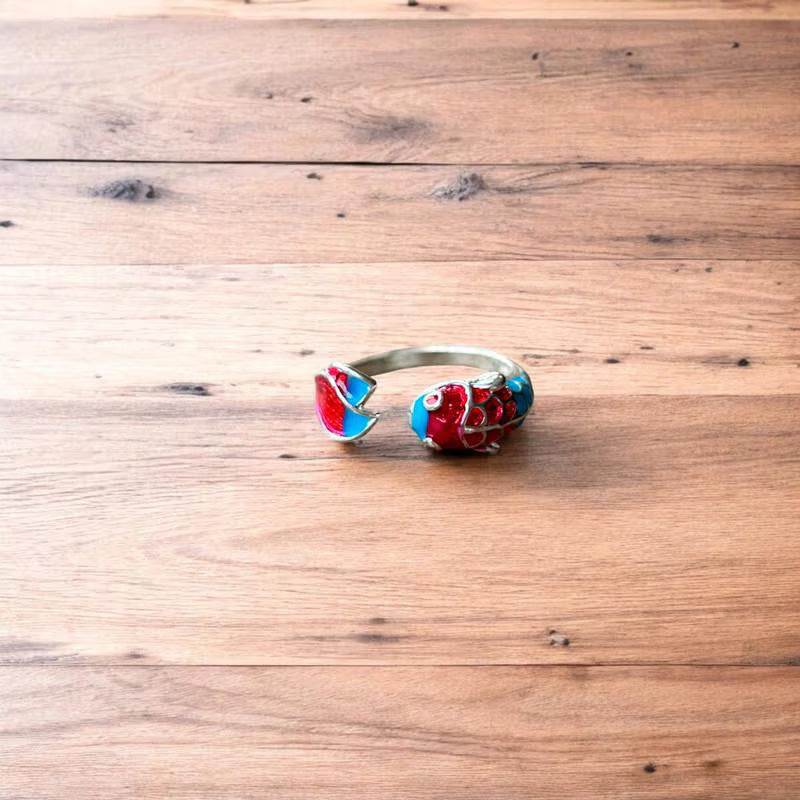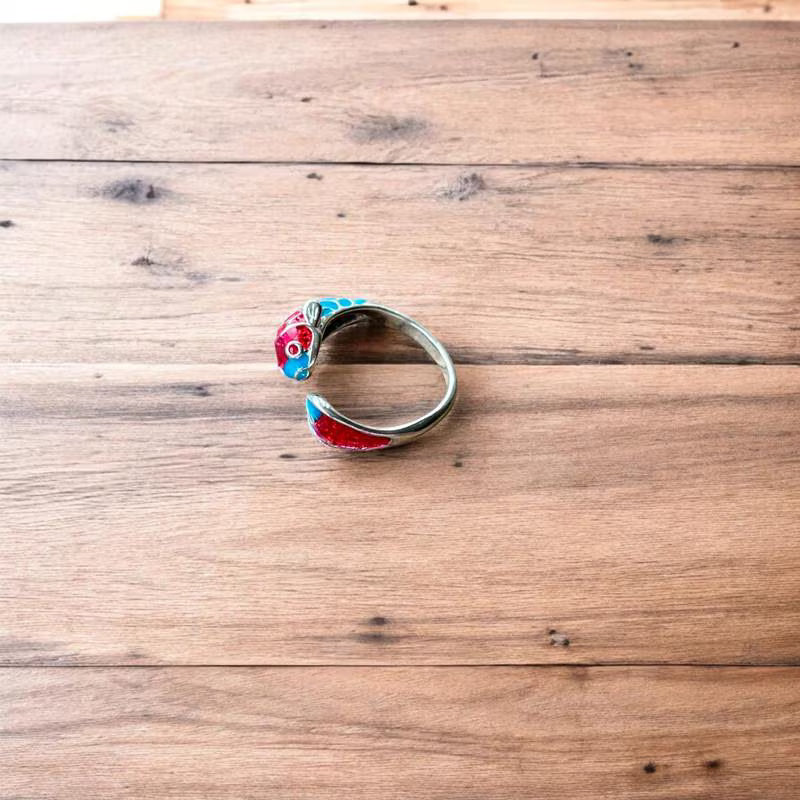Lovely vintage style stainless steel retro fish ring in silver. One size.