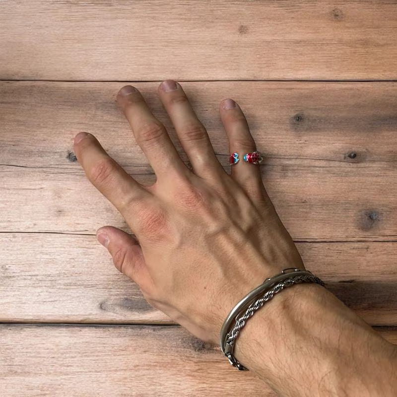 Great condition. Red silver and blue design. Boho style. Strong resistant stainless steel material. Unisex. Fish eye. Fully adjustable - can be resized