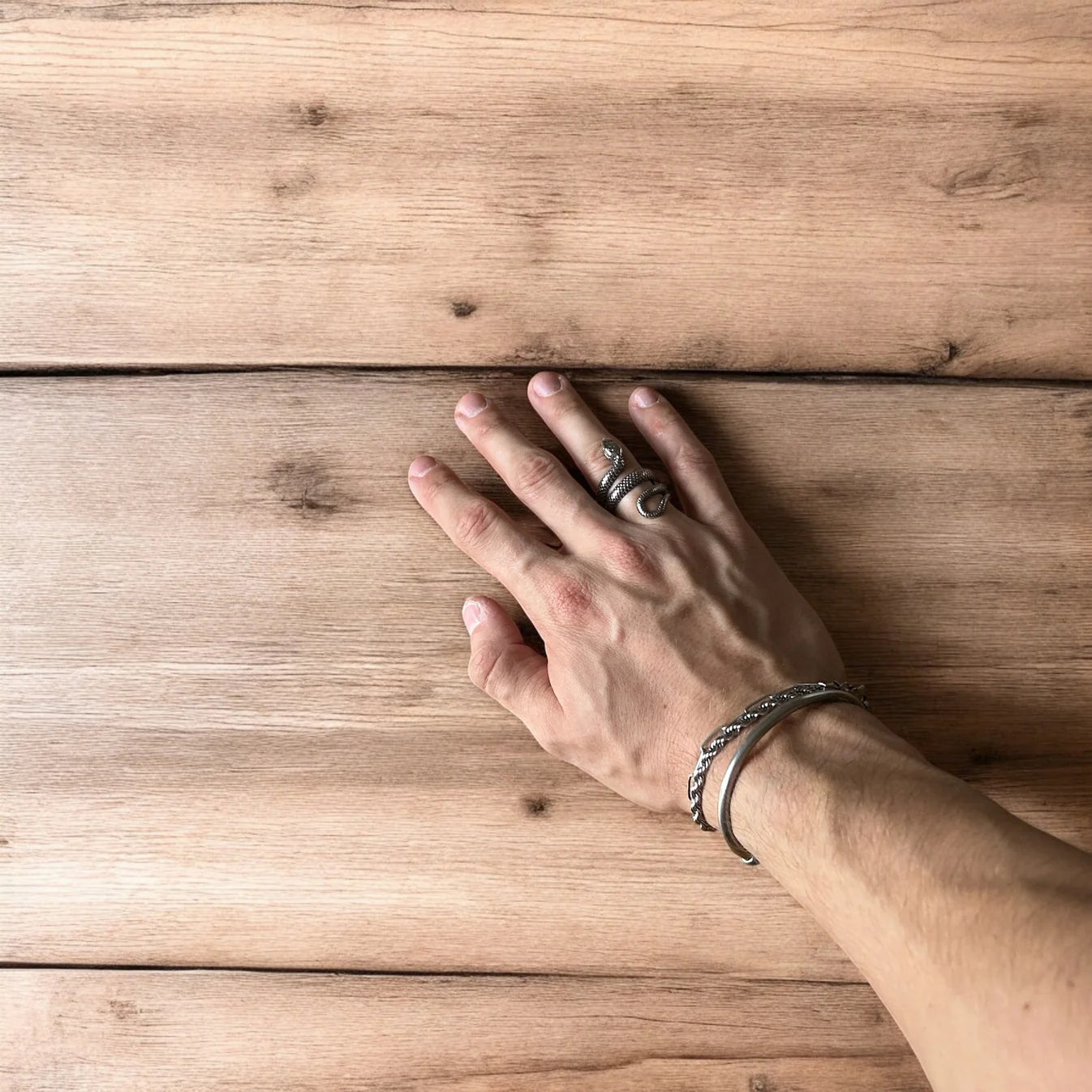 Great condition. Tarnish resistant. Never goes green in water. Strong resistant stainless steel material. Unisex. Gothic punk boho design.