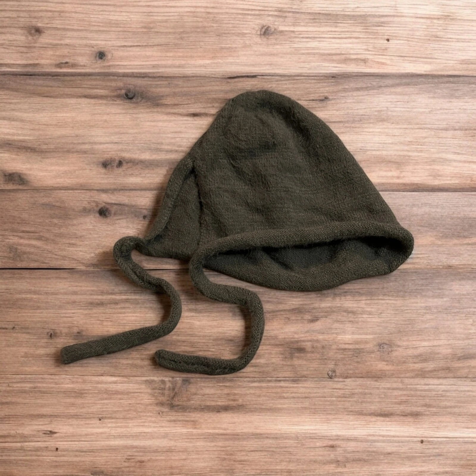 Great used condition. Super warm woollen style material. ideal for the colder winter months. Ear flaps to cover sides of head. Drawstrings to tie up. Vintage style.