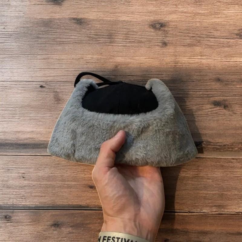 Super warm and comfy ear flap winter hat. Can be styled up or down. Long ties to secure in place. Fluffy inner. Unisex. Great condition. Also have in beige, brown and grey.