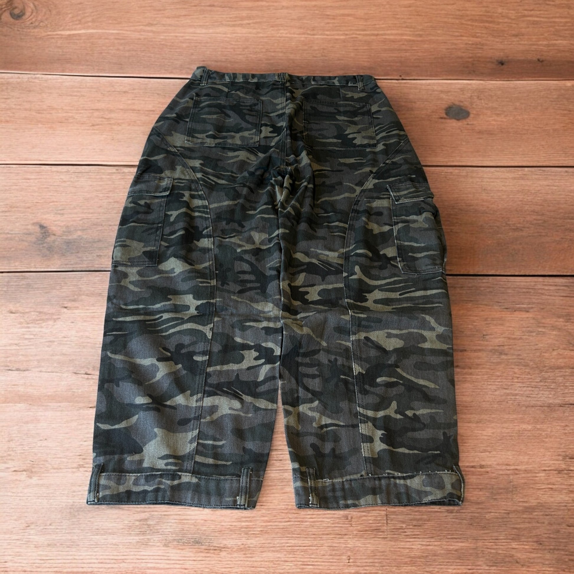 Super baggy wide leg cargo carpenter trousers in army camo.