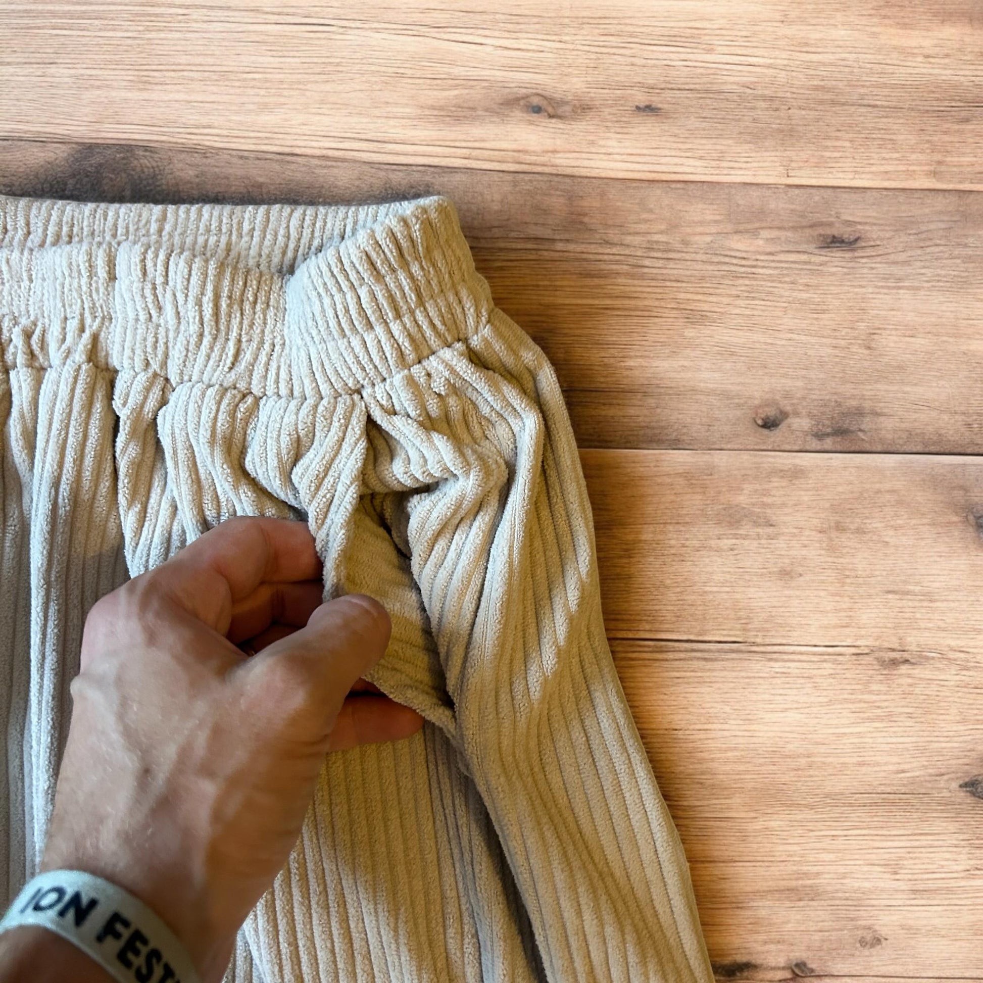 Super baggy wide leg relaxed fit corduroy trousers joggers in beige/cream.