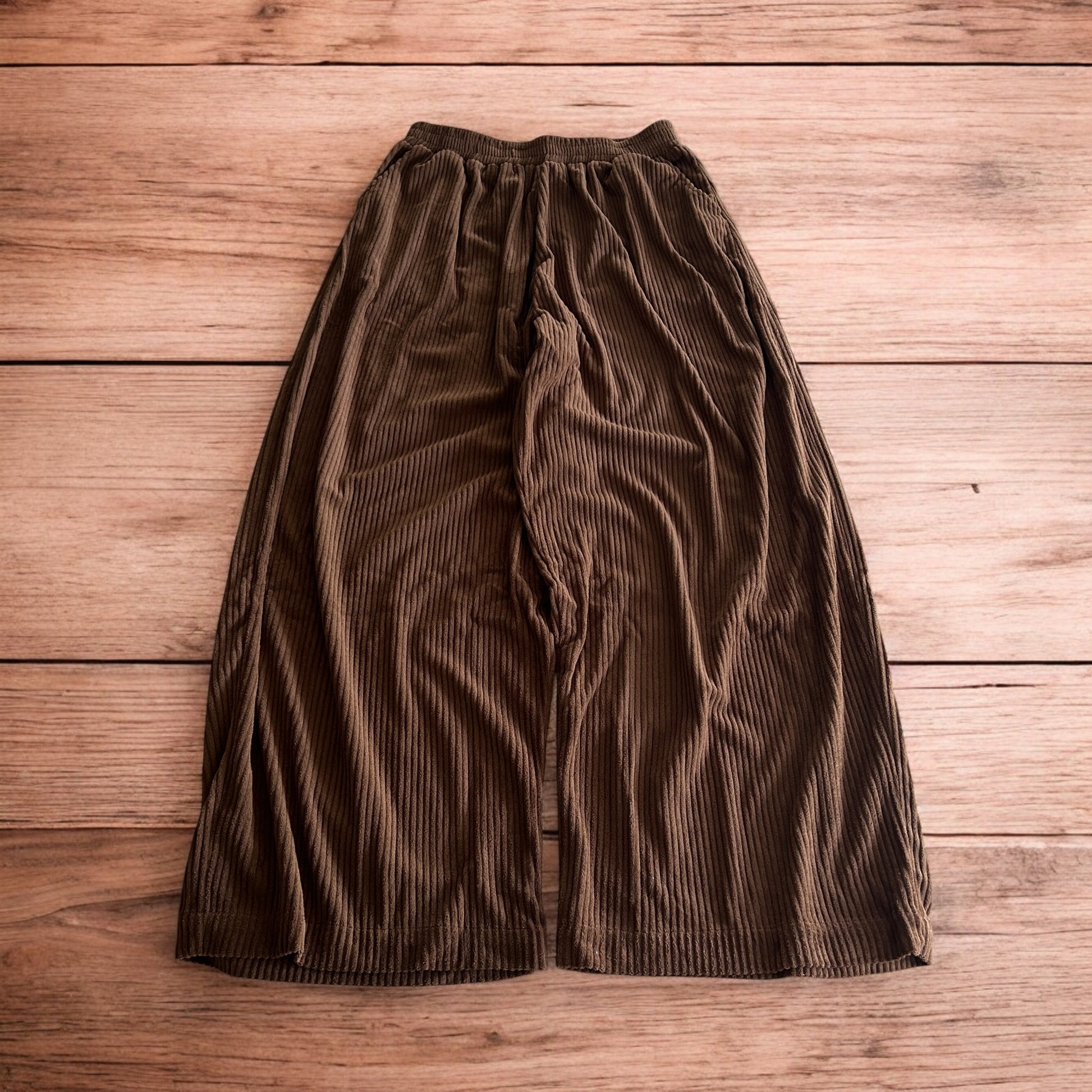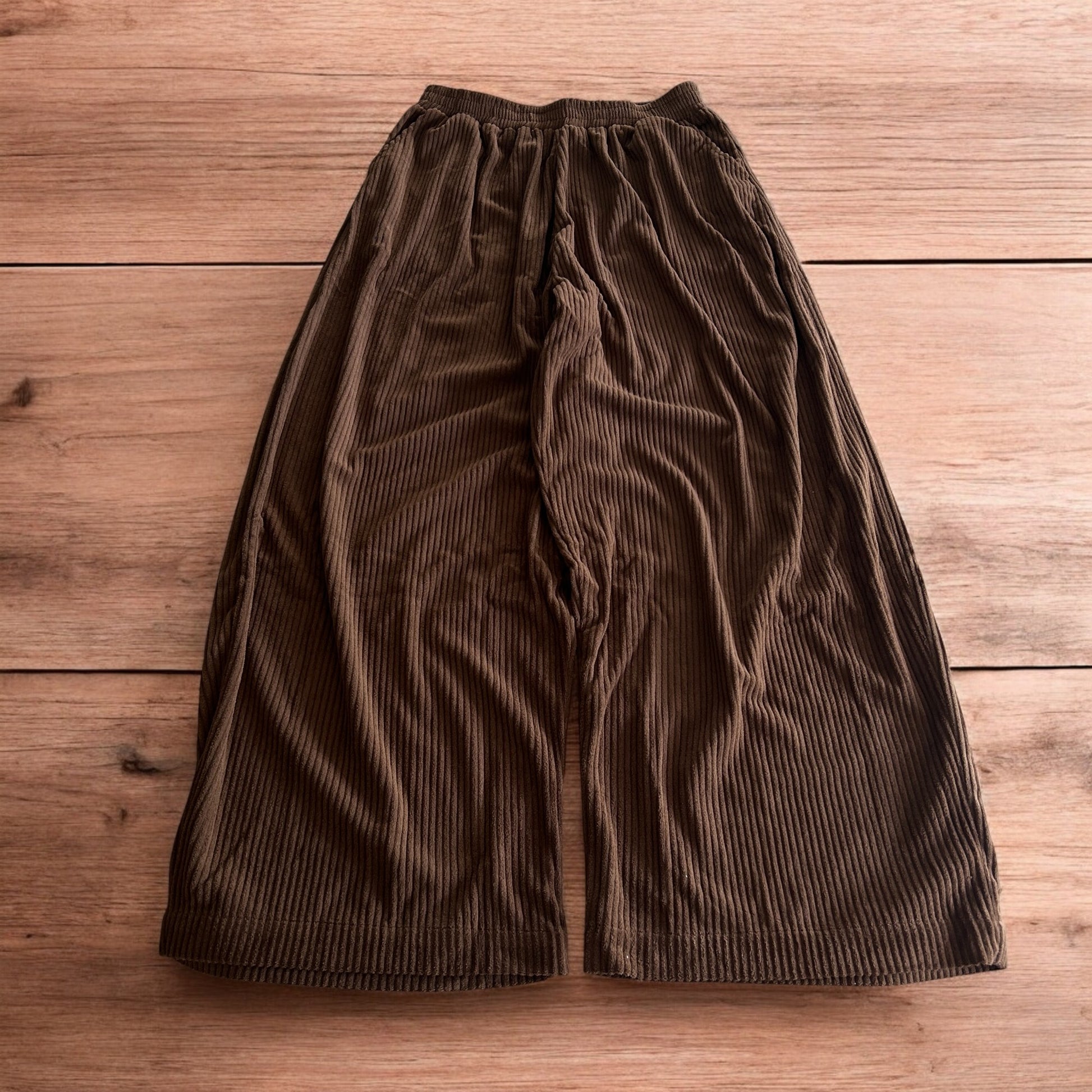 Super baggy wide leg relaxed fit corduroy trousers joggers in brown.