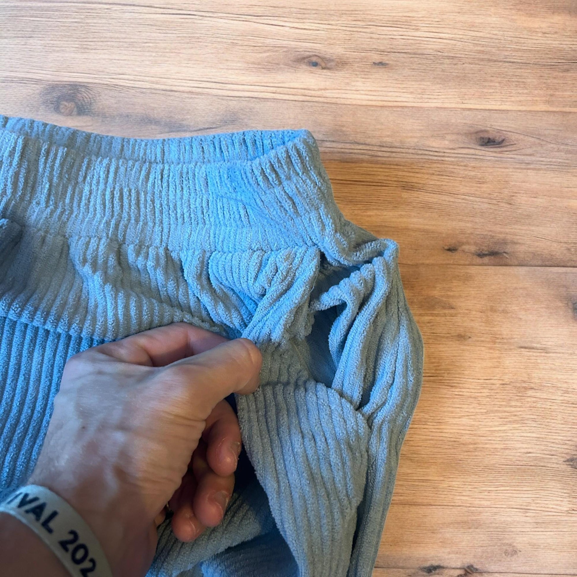 Super baggy wide leg relaxed fit corduroy trousers joggers in light blue.