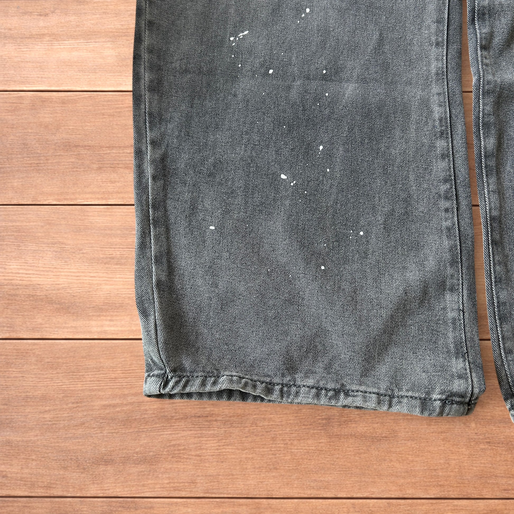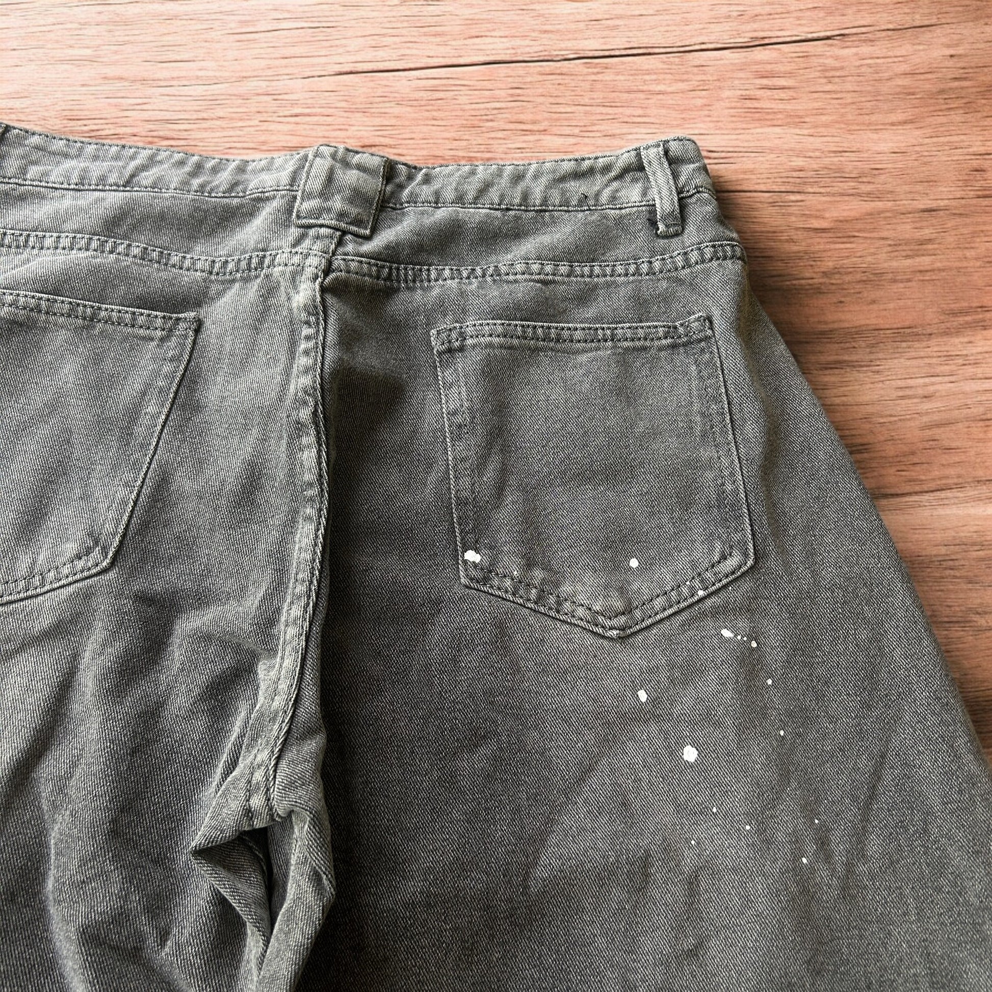 Vintage style baggy wide leg skater fit jeans in grey with paint splatters.