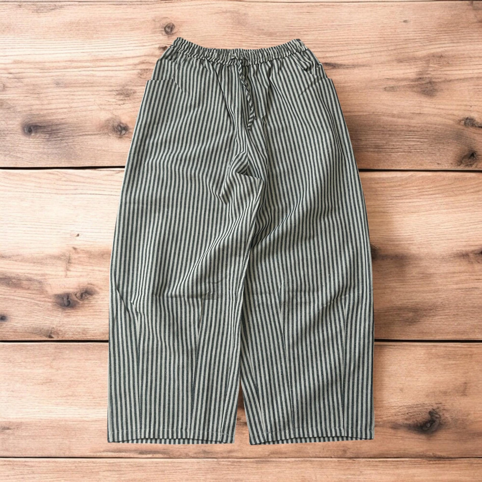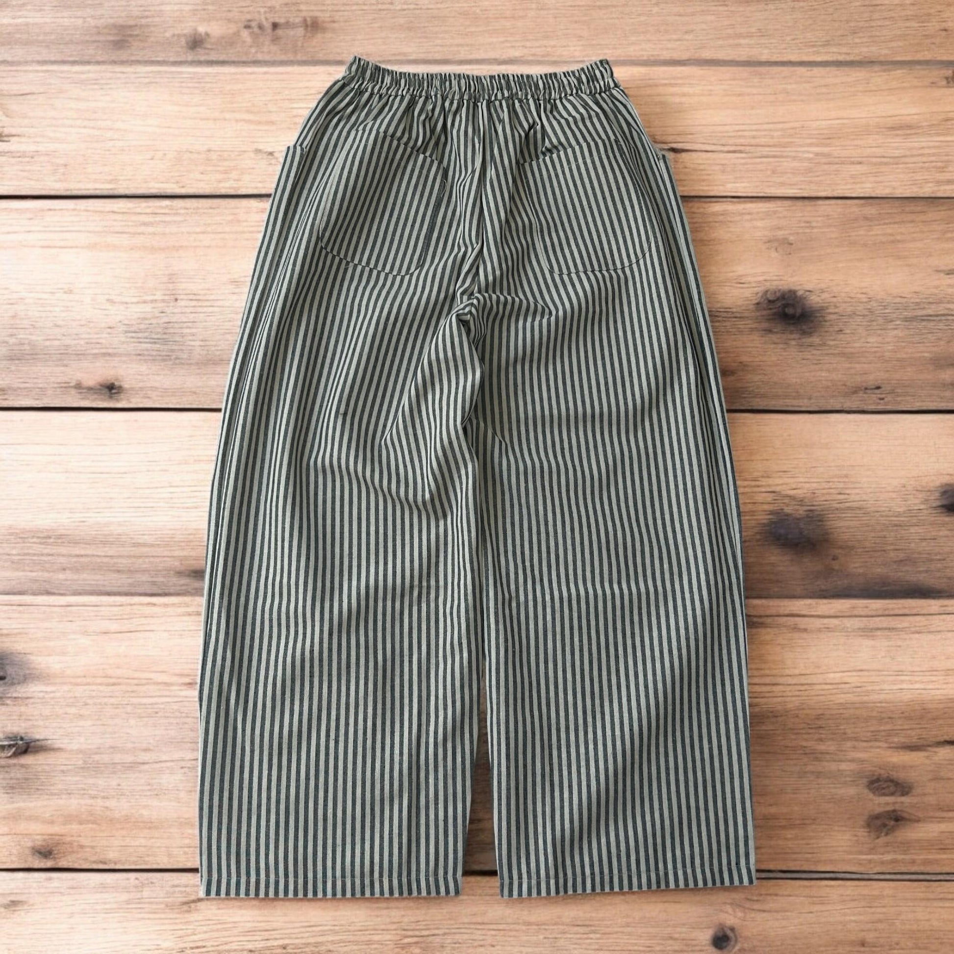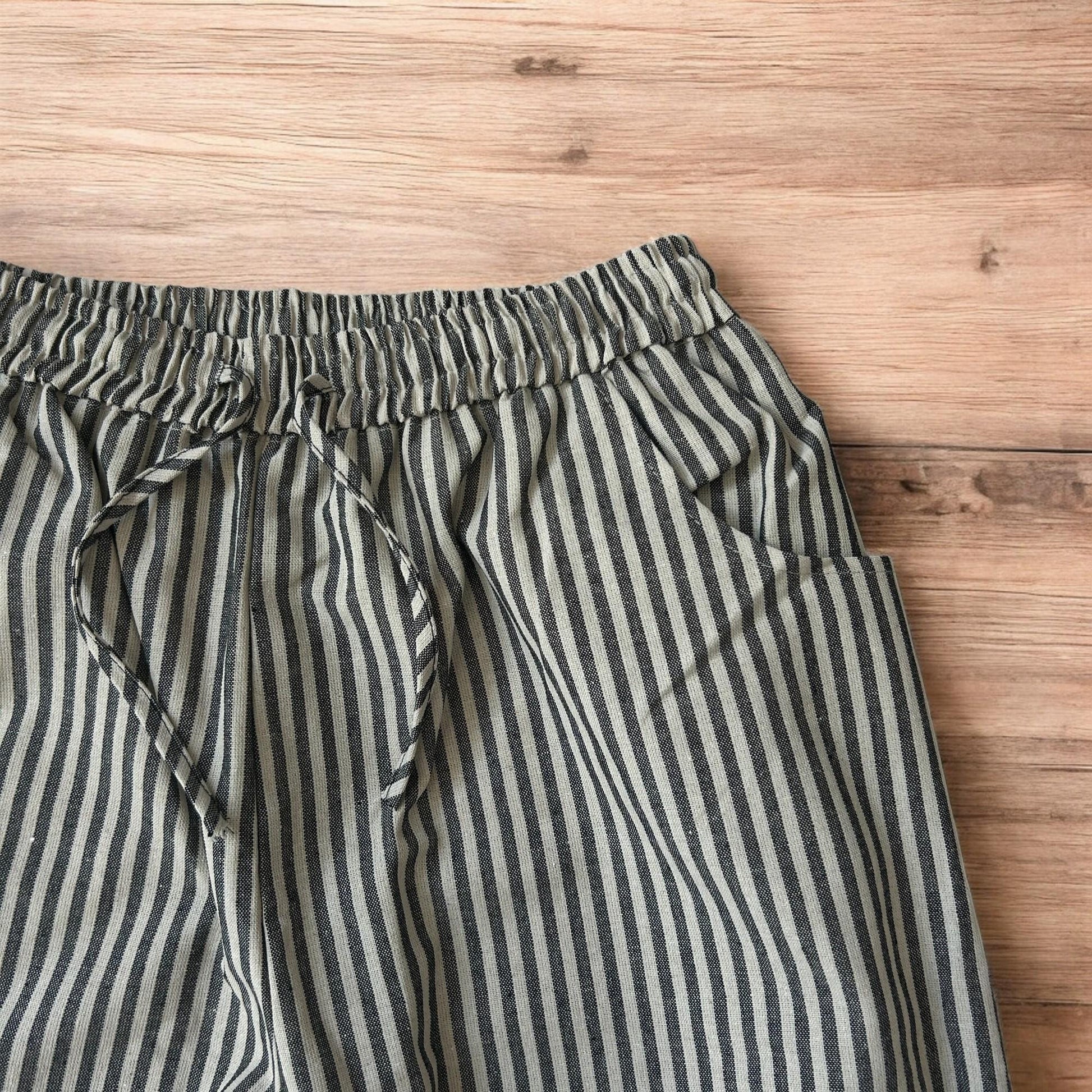 Great condition. Wide leg pinstripe. Korean Japanese vintage style. Pockets. drawstring waist. Linen canvas like material. Beige/cream & black stripes.