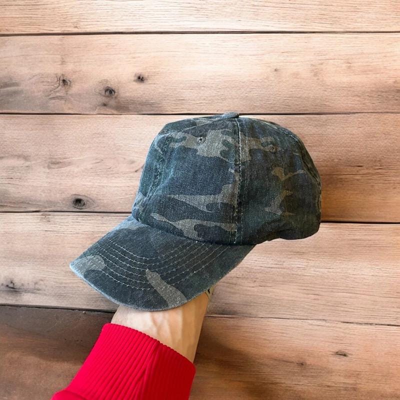 Vintage style Camo military cap hat in green khaki colourway. One size.