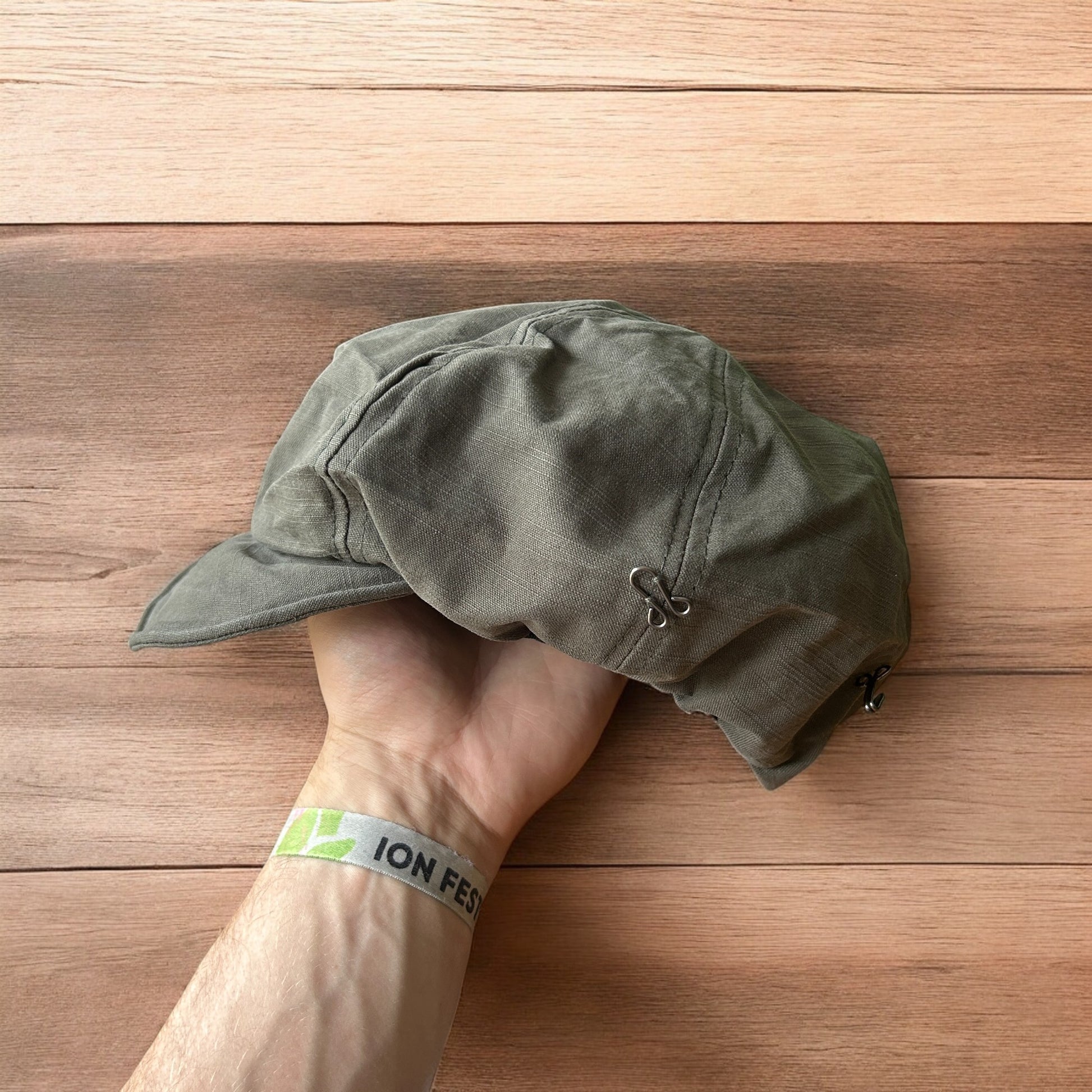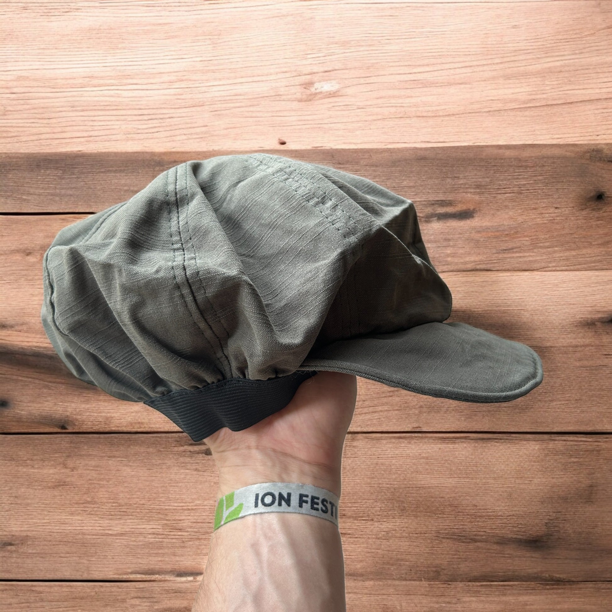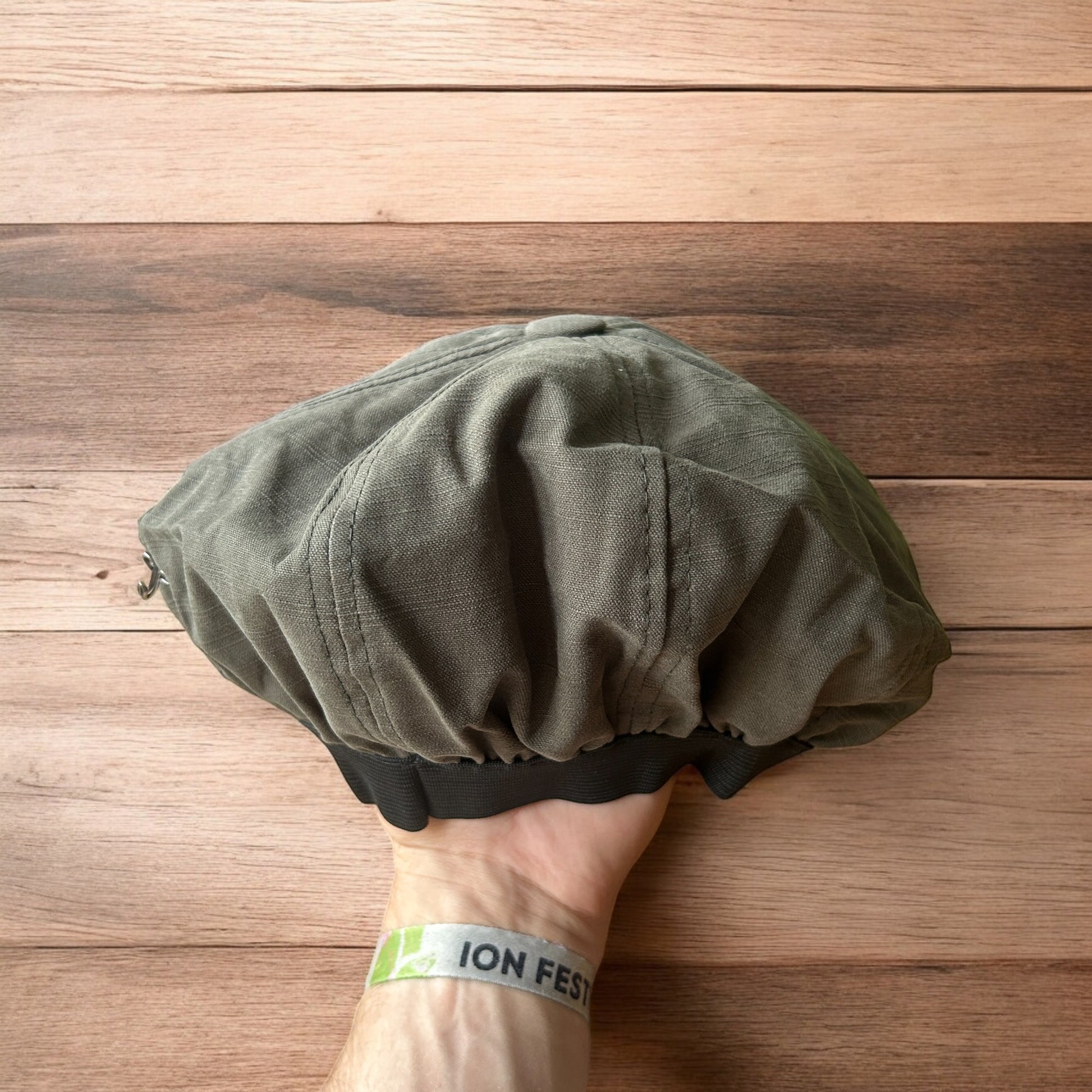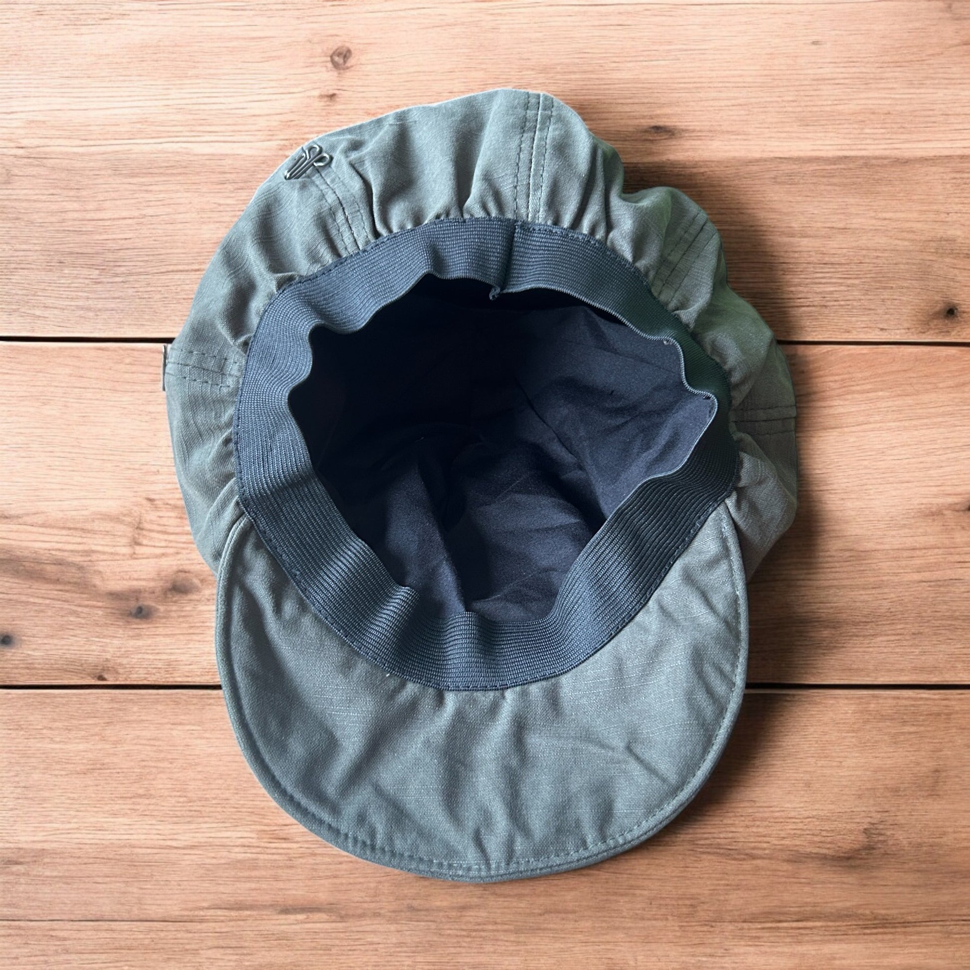 Great condition. Lovely cap with old vintage fade. Can be folded and made smaller using side pins. Bakerboy herringbone Japanese Korean style. Elasticated inner to fit between 54cm-60cm head.