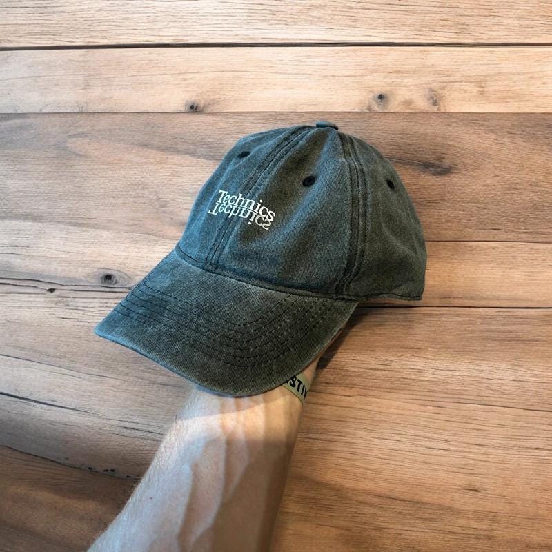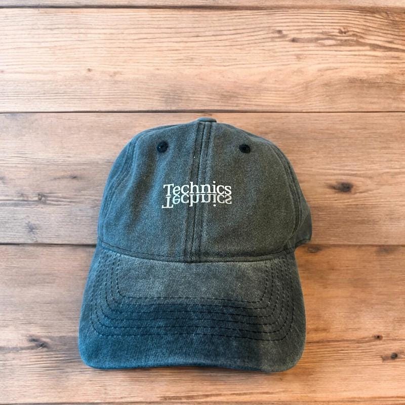Vintage style Technics music dj cap hat in washed grey. One size.
