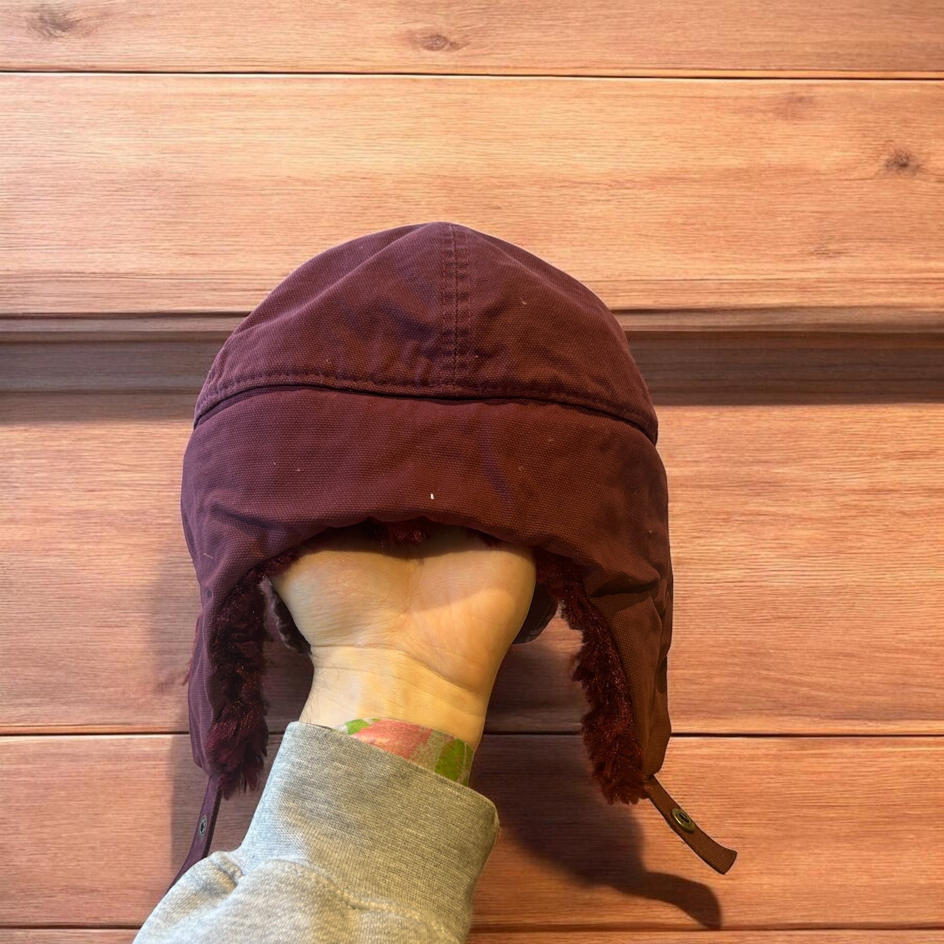 Vintage style trapper Russian ear flap hat cap in maroon/red colour way.