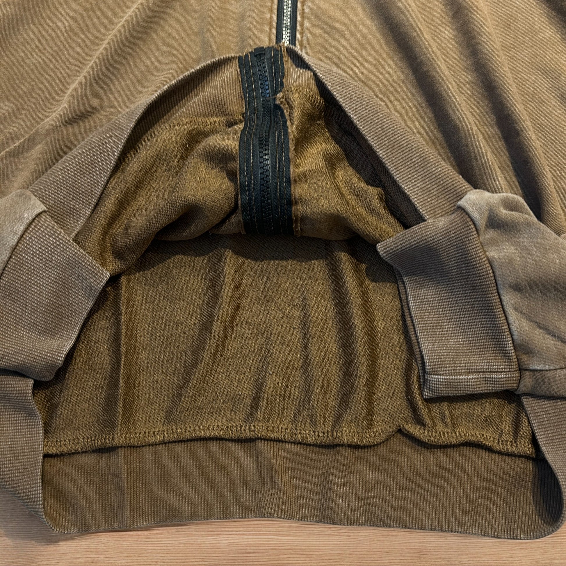 Vintage style zip up hoodie jumper with check in washed brown.